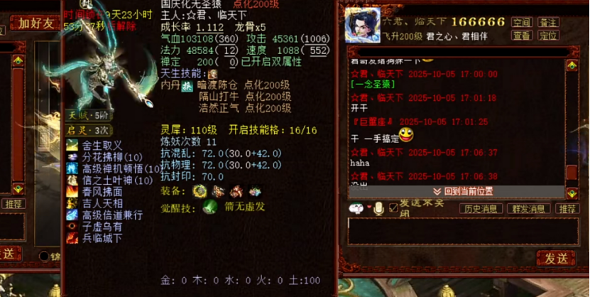 大君哥开始修炼他的第三只问号圣猿!卖三十万的十五级帽子,现如今值多少?十二年前徒弟的留言,如今师傅回来了!十一任务几率神兽年,名字很亮眼!李飞不喝酒入手两个满级灵宝,太极品了! 兄弟们好!今天的大话新鲜事栏目准时奉上,一起来欣赏其中的精彩内容吧! 一、大君的问号圣猿,终于开修了! 国庆期间,大君开始修炼他的第三只问号圣猿啦,能不能一发入魂来化无呢?咱们一起来欣赏! 系统消息 子虚圣猿 此次一共修炼3手,分别修出赫赫神威、以牙还牙、子虚乌有,也祝大君早日修出化无,小编会持续关注! 二、当年卖30万的帽子,如今价值几何? 据说,下面这顶十五级帽子,当初有人花三十万购入,兄弟们先来看看属性! 帽子全貌 十五级帽子,底子加强加速5.7、加强震慑5、抗遗忘19.2、抗混14.1,蓝字附加速度11,炼化敏捷加41、抗灵宝伤害7,总加敏52,现在有人预估值25万,老铁们觉得价值多少呢? 三、来自二十一年前的徒弟留言? 一条来自二十一年前徒弟的留言,如今师傅回来了,徒弟你在哪里? 信息留言 2004年,徒弟给师父留言“师傅今晚几点上线,我可以杀白衣文士了”,这一等就是二十一年,师傅终于上线了,徒弟你在哪,师父帮你杀白衣文士! 四、国庆任务,他被几率神兽年! 国庆任务中,这位兄弟被几率了一只神兽年,名字很显眼,这个节没白过啊老铁! 系统消息 来自岁月如歌服务器的玩家“狗托、神秀生”获得神兽年一只,恭喜恭喜,赚钱休假两不误! 五、刚入手两枚满级金箍,属性极品! 玩家“李飞不喝酒”,今日入手了两枚满级超级灵宝“金箍”,属性简直太牛了! 第一个金箍 第二个金箍 两个满级金箍,天赋技能都是高招、高级抵抗,技能方面也一样乾坤遮天、精神错乱、回魂咒,底子抗落宝分别是30和25.9,连底子都非常极品,拿下这两灵宝应该花不少吧? 今天的大话新鲜事就到这里了,感谢无名大兄弟、超神、小小七、小冷、赵公子等玩家们的热心投稿,小伙伴们如果在游戏内外碰见任何有意思的事情,都可以给我们投稿哦! |