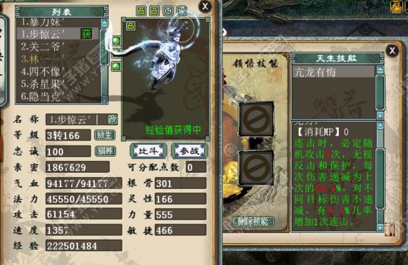 再来看技能效果:亢龙有悔,随机对在场单位进行物理攻击x次,相当于一个小惊才绝艳,对于不同目标攻击不递减,如果攻击7+1次(自身为1次)。那是不是可以看作8倍攻击,而且8次攻击都有几率触发浩然和隔山,什么效果,可以想象。可以比喻成不需要怒气不需要上手的惊才绝艳。 再来分析伤害递减: 这里要科普一下,连击伤害的计算方式是减半减半再减半下去,换到龙君身上来说,就是对相同目标伤害递减50%。抛开翻倍狂暴致命不谈,也抛开攻击浮动值80%~120%不谈。普通攻击如果第一下是伤害10,那么后面连击加起来的伤害总和加起来也不会超过10。 再看龙君这个伤害递减是80%,很显然已经比普通连击伤害高的多了。 发2个龙君图 实际120W左右就连击4次了。对于大部分玩家来说是够用了。连击4次也就是等于上去打5次,对于同一个目标连击伤害是超越普通BB连击的,对于不同目标伤害,攻击算是10W的话,打5次就是50W,如果都打同一个目标,递减按照70%方便计算,那么伤害就是10+7+4.9+3.43+2.4=27.73W,而普通BB连击9+1次,排除翻倍狂暴致命情况下,最高也不会超过20W。而且触发隔山的话效果更好的多。当然浩然触发几率就比普通宝宝低的多,毕竟只有5次,普通BB是9+1=10次。 从任务角度来说,龙君作为清场宝宝实在是上上之选。普通BB你没分花没高分的话,上去连击打死一个就回来了。而龙君可谓天生带分花技能,就直接可以打多个目标。 当然龙君也有很大弊端,点杀无力,想象一下龙君杀板载的稻草人我就情不自禁的呵呵呵呵呵。。。。 有的人觉得龙君砍的很慢浪费时间,那你想一下,砍5次和砍10次时间区别很大吗?有的BB自身砍起来也并不快,比如范式剑精灵大浪。更何况龙君攻击总和伤害都不低。 有的人把龙君比喻做仙,我觉得很恰当,只要触发连击必然上去砍N次,配合抽秒队伍效率那是绝对的强。至于大力队伍,没有抽的配合,会感觉龙君乱砍一通什么都砍不死,实际上是伤害平摊了。 再从PK角度上来看,龙君的出现,无疑是敏队的噩梦,全屏乱砍加隔山灭杀一个敏队完全是有可能的。有的人会说,PK有反震,有金刚,龙君遇到就是个废的,那么换位思考一下,什么功BB砍到不会废?龙君亮点在于配合隔山杀伤力显著。 |