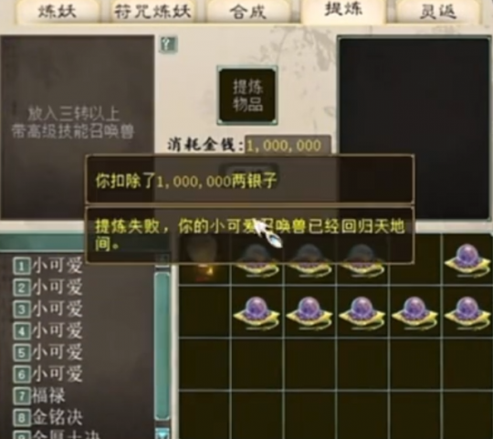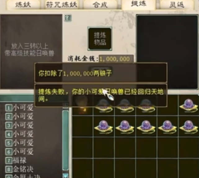 大型召唤兽提炼现场!二十只齐上阵爽翻天