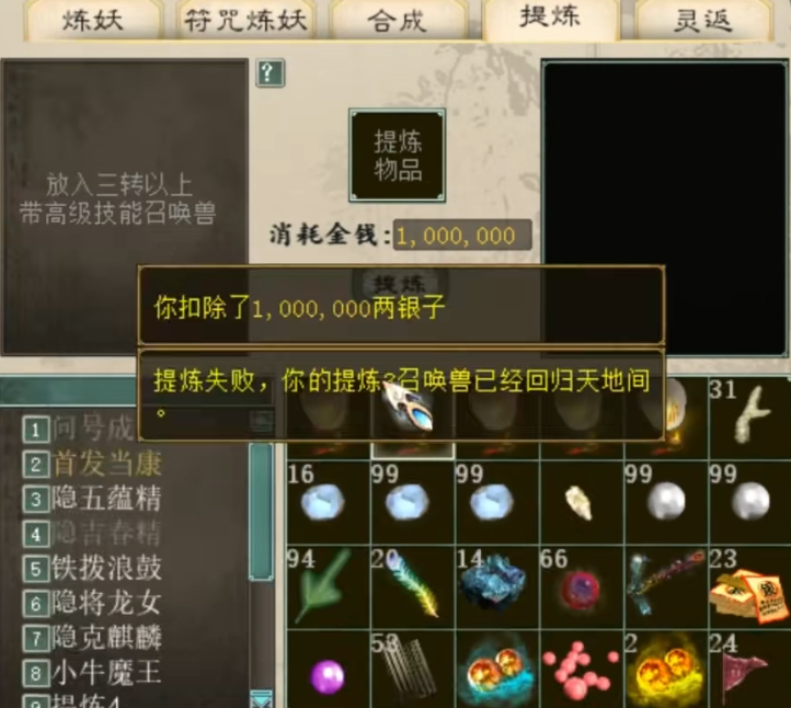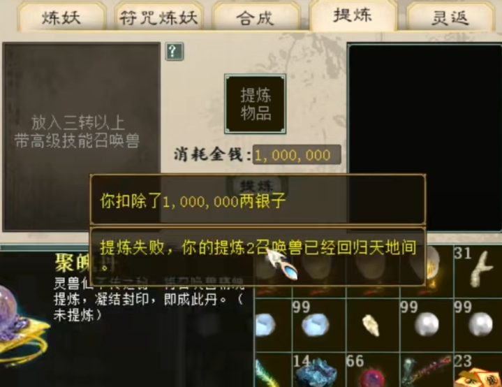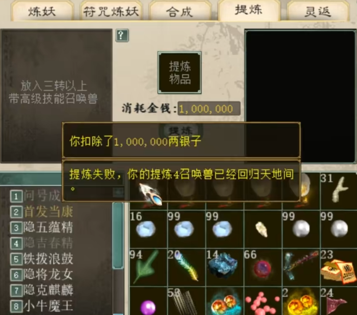 兄弟买了十只大话西游2召唤兽准备提炼,要求不高,能成功一半就行!