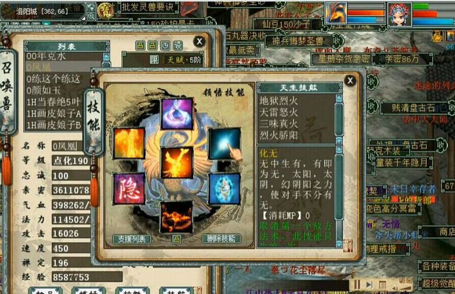 昨晚飘渺郎君上石头蛋蛋的号给化无年顶了技能栏还有给化无神兽凤凰吃克水,结果如何呢?我们一起来看下。