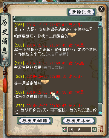 故事到最后落了个不欢而散。其实小编觉得,导致离婚的主要原因是双方彼此间信任度低,这不是游戏中的婚姻就能解决的问题。对方想借号做职业赚钱买装备无可厚非(当然如果他心怀不轨就另当别论了),玩家对陌生人的提防心理也值得肯定,账号安全意识过硬,毕竟双方认识时间过短,并未熟悉。 这场闹剧你们怎么看? <<<点击进入大话西游2论坛讨论>>> |