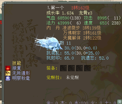 第一个冰块吃出了明察,第二个冰块吃出了春回,第三个碧水吃出了春暖,当我们都在替墨染老板悲剧时,最后一个冰块开吃了,结果居然是化无!!!挑战几率成功了!!!小伙伴们还相信几率的有木有? <<<点击进入大话西游2论坛讨论>>> |