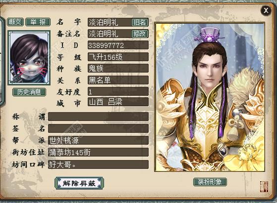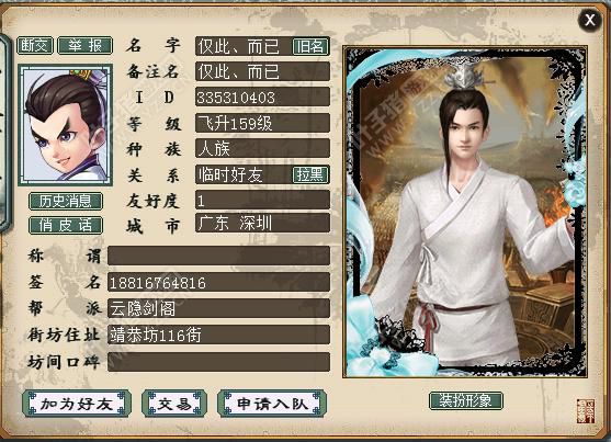 今天莜莜打酱油的时候路过再爱一次,结果发现有个人在刷铃铛说号被清了,然后莜莜就跑去问了具体情况,事情是这样的。 采访内容 叶子猪莜莜:你好,我是叶子猪记者莜莜,请问我可以了解一下具体的情况吗? 仅此、而已:你好,可以的 叶子猪莜莜:请问你说的你的号20多天没有上线,结果回来的时候号就被清了,好友也全部被删了 仅此、而已:对的,我出差了20多天,然后回来就发现号被朋友清空了,好友也全部被删了.. 叶子猪莜莜:那你们是怎么认识的呢?认识多久了啊?你们号都可以相互上号吗? 仅此、而已:认识他有一阵子了,在一个帮派,经常一起做任务,一起杀BOSS,帮站,有时候换着带任务,去年年底回家我就解除电脑绑定了,新年过年后我就没有再绑定电脑了 叶子猪莜莜:我可以弱弱的问一下为什么你不绑定电脑呢?出差20多天的情况下? 仅此、而已:主要是没有想到这个问题,而且是买东西什么都不太方便 叶子猪莜莜:就是因为很信任他,所以没有想过他会这么做对吗? 仅此、而已:也不是说信任他吧,就是因为有时候确实不是很方便 叶子猪莜莜:你玩大话多久了? 仅此、而已:我从04年开始玩的大话,也算是老玩家一个了吧.. 叶子猪莜莜:老玩家还这么粗心啊这么虎啊 仅此、而已:不是粗心或者虎..是真的没有想到,毕竟如果处处防着朋友,那真没有意思 叶子猪莜莜:那你现在可以申请找回吗? 仅此、而已:现在已经找回一半了..其他的客服说已经没有办法找回来了,他们已经尽最大的努力了.. 叶子猪莜莜:那经过这次的教训你有什么话想对大家说的吗? 仅此、而已:我就是觉得挺难过的, 今天跟你说这些只是让我们区的人知道他是什么样的人,避免大家以后在上当..如果号让朋友玩,不要超过15天的时间不上号..还有想跟客服提下意见,就是如果清除游戏的密码琐给个手机提示什么的...清我号人的个人信息是ID338997772 接下来莜莜又跑去联系另一个当事人,准备问下具体情况的,结果很可惜他一直没有开好友 |