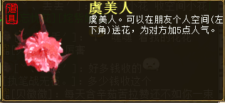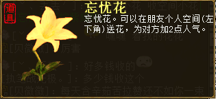 10月下旬维护后游戏空间多了一个送花功能,自从出了红包,柒柒每天拉赞轻松100赞人气爆棚,除了这100点人气外,额外就只能靠鲜花了,不知各位小伙伴们见过空间这些鲜花吗? 分享3个其他菇凉秀的空间小花花,柒柒不太清楚到底有多少种类鲜花?网上貌似也没说哦,这个鲜花是寻芳任务有几率掉落的。 柒柒作为五开党连续刷了几周寻芳依旧一朵没见,心真的好塞,没分享到的鲜花欢迎有的小伙伴截图补充下。 顺便打个小广告,有游戏试玩的小伙伴吗?柒柒和叶子猪小西想借个游戏试玩能刷任务的号测试新玩法,联系方式QQ348966545/2803187727,热心的小伙伴快点联系我吧 应该还有+1点人气的小花,柒柒空间不知道哪个可爱的小伙伴送了一朵+1点人气的小花,上面的图还是帮派的美女分享时柒柒抓拍的呢! <<<点击进入大话西游2论坛讨论>>> |