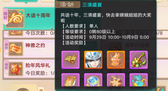 大话西游手游国庆中秋活动,官方更新了大话十周年新活动:三清盛宴、喊话奇妙游、庆生百宝城,参与即可得福糕、五行材料、限定家具等奖励,喊话十周年还能开出iPhone17、十周年定制纪念币、定制麻将礼盒等实物周边。下面叶子猪就带大家一起来攻略一下! 一、三清盛宴跳一跳有技巧 大话西游手游十周年·三清盛宴活动开启,这个跳一跳小游戏相当有意思,等级≥80级均可参加,单人活动,每日可参与一次,活动时间是9月29日—10月9日。 叶子猪体验发现,三清盛宴只需要长按屏幕蓄力,然后根据测算距离,松开手指跳跃,跳到下一个道具跳台上面,不掉下来就可以了,长按时间决定跳跃距离。过远过近都不行,掉落跳台就算挑战失败,只能从头来过,可以无限次挑战。 当然,如果你有复活卡,那就不用从头来过了,复活卡是需要集齐4个三清碎片,才能合成一张复活卡。三清盛宴每天开启一个新关卡,通关奖励有1级五行材料、神兵、超级福糕、终极技能书残卷、幻彩露、聚魄丹等珍稀道具奖励。 三清盛宴有10个关卡,分为十天完成,大家记得上线,每天跳一跳完成任务,活动操作难度极低,不用复活卡也能轻松通关,重要的是,奖励太丰富了!叶子猪要是能拿到一个超级福糕岂不美滋滋! 二、庆生百宝城小队寻宝战斗 大话西游手游十周年·庆生百宝城活动,需要前往鸡驴大神处,接取2个挑战任务,以团队协作、寻宝战斗为核心,活动分为寻宝、战斗、彩蛋收集三部分,通关副本次数达标,可获得限定家具套装——十周年庆生主题家具。 这个十周年庆生主题家具真的不错,包含一套十周年蛋糕、十周年纪念灯、纪念锦旗、大话灯牌等5件家具,还可以开灯,放在家园有多靓丽不用多说了吧,叶子猪建议大家一定要参加! 第一个瓜分鸡驴宝箱任务,需要组队≥3人挑战鸡驴五大分身,分身会召唤小怪,单人无法参加活动,只能组队参加,战斗胜利之后,队长点击百宝箱,打开获得奖励。 这个活动难度不大,3人队、5人队挂机都能通过,队伍人数越多,宝箱奖励越丰富(如5人队>3人队)。宝箱还有许愿机会,首次通关:100%获得绑定福糕×1(用于提升召唤兽初值)。 第二个挑战任务是逮住鸡驴崽崽,需在场景中捕捉15只鸡驴崽崽(随机刷新于地图各处),点击互动即可完成。有摸鱼鸡驴崽、贪吃鸡驴崽、躺平鸡驴崽、快乐鸡驴崽、蹦跶鸡驴崽等等,非常可爱!叶子猪和队友基本就是一刀一个,通关效率极高。 此外,叶子猪还发现,队长不中断带队,即可获得队长福袋一个,而且组队人数越多,宝箱奖励越好,注意活动时间是9月26日—10月6日!想要限定家具、超级福糕的小伙伴不要错过这个机会! 总的来说,大话西游手游十周年:三清盛宴、喊话奇妙游、庆生百宝城,作为国庆中秋双节的核心玩法,集趣味性与福利性于一体。只要参与活动,都有概率获得福糕、超级福糕等奖励,三清盛宴必得1级五行材料,庆生百宝城必得福糕、十周年家具,大家赶紧去参与吧! 更多大话西游手游攻略,可搜索“叶子猪大话手游”专区查看:http://xy2.yzz.cn/sy/。国庆假期即将到来,欢迎各位小伙伴一起进群玩大话,组队搬砖、福利活动、礼包资讯,你想要的这里都有! |