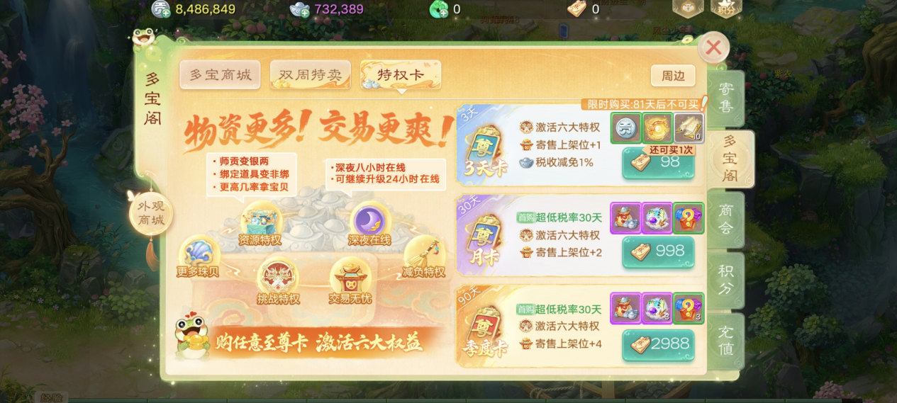 万众期待,《大话西游》手游首个自由交易服于2025年11月18日12点正式上线!该服务器以“真自由、更保值、新起点”为核心,在回合制手游中实现了彻底的自由交易,一举打破传统手游的各种交易限制,为玩家提供了全新的游戏体验,更为游戏搬砖找到一条新的赛道。 叶子猪体验之后,感受最深的一点就是:对于搬砖党非常友好!交易服支持多开搬砖,手机自带五开功能,可实现小号养大号“四养一”的搬砖模式,特权卡玩家可通过银两兑换点数续费,开启“以搬养卡”的良性循环。 什么是真正的自由交易?所有银两道具自由流通 可以这么说,开了特权卡/至尊卡,搬砖就能畅通无阻,所有银两和道具都能自由流通、自由定价。它不是“挂羊头卖狗肉”那种交易行/商会,而是真正意义上的自由交易,我说两个点你就明白了。 其一,对比其他回合制手游,买卖东西要上架拍卖行,上架价格有限制,交易还要系统进行审核,而自由交易服则是完全开放的交易模式,打破了传统道具绑定与价格区间限制。 大话手游所有非绑定道具(包括非珍品召唤兽、装备、九彩晶石、佩饰等)均可自由定价交易,玩家真正掌握市场定价权,例如见闻录、五行材料、八荒、三速鞋等这些刚需道具,都是通过玩家交易获取的。 其二,我们平时玩其他回合游戏,打出好东西要不就是上架拍卖行,要不就是卖给系统,卖出物品还要交手续费。大话手游交易服,直接开放了三种交易方式:摆摊、寄售、当面交易。 ·摆摊:在游戏场景中创建个人摊位,上架任意道具无价格限制,并支持收购功能。摊位按分钟收取费用,税率随特权卡等级降低。 ·当面交易:90级后开启的同屏1对1交易,价格任意填写,系统0审核0干预,交易税由卖家承担(当面交易与摆摊税费从8%降至4%)。同时,首次购买月卡/季卡至尊特权,将会赠送30天1%超低交易税权益(适用于所有交易方式)。 ·寄售:类似多宝摆摊的快捷模式,道具上架后面向所有玩家出售。 无论何种方式,交易完成后银两与物资即刻到账,绝对不会审核延迟半天,耽误你的搬砖效率。1对1当面交易,大号小号银两和物资任意流通,没有其他回合手游大号小号互赠物资,还要充值达到门槛这种操作。 关于税率的问题,这里我们要再讲一下,有些玩家可能会不能理解,自由交易服买卖为什么要交税?其实这是官方回收银两,抑制通货膨胀的一种有效手段。试想一下,如果游戏持续产出大量银两,但系统没有进行有效回收调节,那其实大家手里的银两是越来越不值钱的! 长期以往,玩家资产贬值,也就没有人愿意在交易服玩下去了,而且有一点大家需要注意,这4%的税率(开通特权卡首月降低至1%),对于正常交易的玩家来说,影响几乎是微乎其微的,影响最大的是那些频繁交易的商人/工作室,他们才会增加倒卖成本。这样一来,工作室也就没有办法再以本伤人,低价倾销或垄断定价扰乱市场。 当面交易不设置0税率,则是为了避免大宗交易绕过系统监管,玩家被诈骗后无法有效追回的风险,税率可有效限制物资无限流转,防止多手倒卖无法追溯。 交易服真的可以搬砖吗?产出银两直接变现收益 大话手游交易服在一测二测的时候,已经成为了搬砖党的“新乐园”,这次正式服上线就更不用说了,预约人数屡创新高,开启预约4天,连开四台服务器,正式服服务器爆满。叶子猪有不少玩家在问:自由交易服真的可以搬砖吗?答案是非常肯定的:能! 首先老玩家都知道,搬砖游戏的前提,就是游戏内要支持交易,道具可自由流通,不会限制多开封号。大话手游交易服完全满足这些条件,所有物资均由玩家产出并在玩家间流通,而非通过系统购买,这样一来游戏投入更加保值了。 做任务产出的银两可以卖给其他玩家,搬砖收益直接变现,而且交易服是有大话特色摆摊系统的,玩家通过摆摊、收购、挖宝、副本、日常等途径,产出大量非绑定道具(如高装、神兵、仙气、金蝉),职业商人也可低买高卖赚取差价,通过交易直接变现。 搬砖的核心策略是“以卡养卡”:用初始银两购买短期特权卡,集中交易后换购月卡、季度卡以降低成本。测试期银两与点数的兑换比例(4000:1)仅供大家参考,正式服上线后可能因供需变化会有调整。 此外,还有一个非常重要的地方,大话手游在手机上也能轻松搬砖,桌面版、手机版都支持同时运行5个账号,在手机上也能5开多开搬砖,最多支持25开!不需要一定要有电脑设备才可以搬砖,手游更容易上手操作,很适合新手小白玩家尝试五开。 是不是一定要买特权卡?特权卡决定收益上限 叶子猪实话实说,一测二测的时候,关于特权卡也有很多争议,是入门门槛还是必需品?支持的玩家认为这是搬砖利器,提升了交易效率与收益,反对的玩家则表示,这是不是“入场门票”变相收费? 其实这个问题是可以这么来看的,第一,官方已经强调了,特权卡并非强制购买,不购买特权卡也可以通过三界功绩(养成系统获取)来摆摊/寄售,零元党可通过倒卖材料积累财富。 购买至尊卡后可享受六大权益,包括非绑定道具产出、税率减免(首购30天低至1%)、寄售位增加、银两资源翻倍等,成本核算下来,一天3块钱,比其他第二副业靠谱多了。 特权卡可通过点数兑换,测试服约400万银两换一张月卡,投资回报率极高,开了特权卡之后,平时我们深夜在线挂机、挑战奖励翻倍、减负特权等,无疑大幅提升搬砖效率。 大话交易服特权卡,本质是效率加速器,官方引