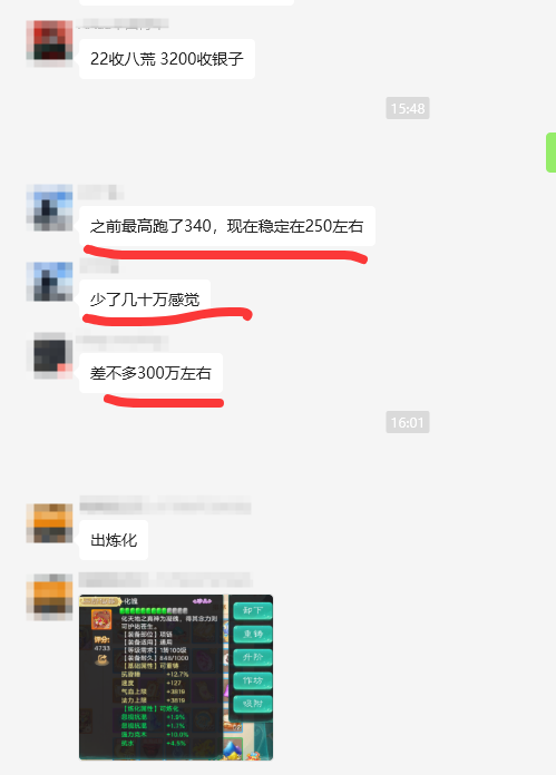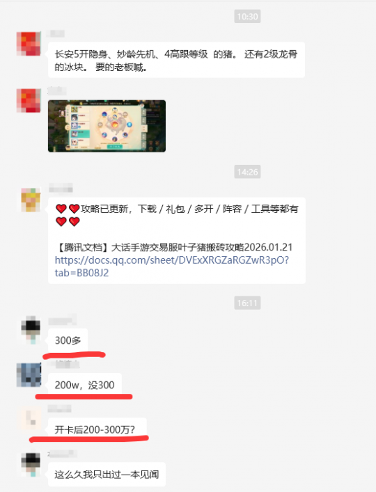 大话手游200环银两收益多少?自由交易服跑200环,一个月能拿到多少银两?在大话手游自由交易服当中,开了特权卡之后,200环任务的银两收入很可观,每周完成300万左右,一个月下来大概能有1000万到1200万银两。 200环任务每周六凌晨5点刷新一次,含累计最多可领取2次,能拿到大量银两、师贡、盘古精铁、神兵奖励。之前大家跑的时候,每轮200环任务能拿到250万到300万银两,最高看到有人跑了340万,不过现在稳定在250万左右。 于是有玩家质疑,大话手游200环银两是不是又变少了?最后一环银两变成28.8万银两,比之前36万银两整整少了7.2万! 这里叶子猪必须科普一下,大话手游200环任务是呈现收益递增规律,以10环为一个轮回,每个轮回的收益比上个轮回增加约27600银两。比如第一环奖励约30000银两,第十一环约32760银两,第一百九十一环可达82440银两。 而且每逢百环(第100环、200环)收益大幅提升,尤其是最后一环,有双倍奖励(银币和师贡),还有神兵或盘古鸡驴获得。神兵市场价可达1000万银两左右,如果能出神兵,那简直就是稳赚了一笔。 那为什么有些玩家会认为:200环银两变少了?自己200环银两没有别人那么多?其实有可能是差在第150环的时候,高老先生让我们找一本四字名字的普通技能书,完成后可获得162万银两。 如果你像我这个号情况一样,仓库里没有存着兑换的四字技能书,那就要花150万银两去购买,完成这个任务之后,净收益也只有12万银两。 但如果你在蜃楼海市用珠贝兑换,500珠贝可以随机获得一本普通技能书,开出四字技能书的话,就相当于你省了150万银两,净收益162万银两了。 再加上由于各服物价差异,比如有些区服购买技能书的成本约为100万银两,这个差价也会导致收益不同,建议大家可提前在多宝阁低价收购技能书,避免临时高价购买。 材料都用珠贝兑换,宝宝直接购买,差不多最后有300W,当然200环任务中需要提交特定宝宝(如小黑熊、龟丞相),可提前抓取并出售,一只售价约5-10万银两,这样就可以把抓宝宝的钱也省下来了。 从叶子猪交易服群内反馈来看,目前自由交易服中,银两价格受供需关系影响较大,实测显示一个账号平均可获200-300万银两。由于新区需求旺盛,200环任务收益可能更高,尤其是周一、周日刷新时。 以上就是今天的所有内容,不知道大家交易服200环收益,是不是也是200万~300万银两左右呢?自由组队、搬砖交易、买卖物资,欢迎加入叶子猪大话手游交流群&交易服! 大话手游攻略已更新,下载/礼包/多开/阵容/工具等都有! |