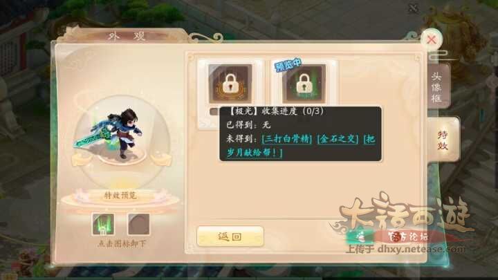 维护公告内容:酷炫十足、绚烂夺目的个性特效即将来袭!华彩非凡的瑞光祥云,盘旋脚底的日光月华,只要达成相应的功绩,就可以得到霸气十足的专属特效和全面升级的视觉享受! 看上去貌似个性装备是个不错的系统,尤其对于爱美的人士和妹纸们来说,已经迫不及待的想要了解个性装扮系统,甚至幻想着自己能够拥有一个华丽炫酷的装扮,叶子给大家带来前线真实爆料,公平而真实的让大家了解清楚! 打开物品栏——点击外观按钮——进入到下面的界面! 从界面我们可以了解到,一个玩家可以同时装扮两种特效:脚步特效(移动时有炫彩脚丫光环)和上身特效(炫彩光环绕身)。而特效的来源方法是通过收集,我们点击上身特效的收集,是下面的界面! 上身特效 1、太极两仪 同时完成五种功绩:橙宝石*璨、紫宝石*璨、蓝宝石*璨、绿宝石*璨、红宝石*璨。每个功绩要求装备装备16颗宝石!意思就是说您全身上下全部都打上16个宝石,这个特效就属于您! 2、蝶恋花 完成五灵始祖功绩获得,要求合成了三只珍稀神兽!记住不是五常神兽,是珍稀! 3、命犯桃花 完成天涯毗邻和金婚功绩,天涯毗邻是与四个好友的友好度达到50000,金婚是满300天的时间!两个同时完成,获得特效! 脚步特效 点击脚步特效后,出现以下界面,共计两个特效! 1、八卦 完成我乃三界财神、护帮柱石两个功绩获得!我乃三界财神要求累计发放的世界红包金额超过1500000000银两。护帮柱石要求累计发放的帮派红包金额超过1000000000银两! 2、极光 完成三打白骨精、金石之交、把岁月献给帮功绩可以获得!三打白骨精要求完成第十四章剧情。金石之交要求结拜满99天!把岁月献给帮要求获得过2800000帮贡! 最后,也没有太多话想说,目前毕竟是在测试区进行测试,那么后期全服投放后,想必会增加一些特效或者降低特效功绩的完成难度!这只是本人预测,具体的只有开发组知道! |