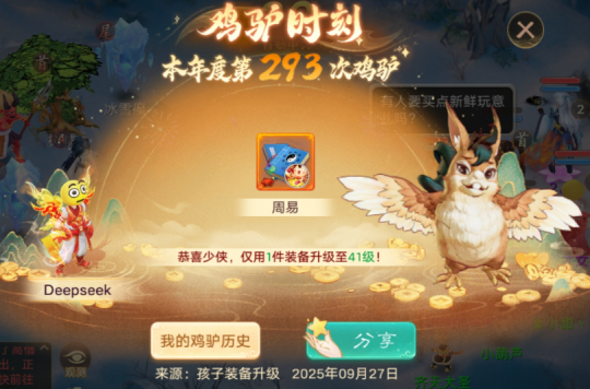 大话西游手游牛图秀,一块钱的化无!看看怎么个事?!有玩家刚买的一元礼包,开出高宝,随手一挖得化无!这么离谱的事情你遇到过吗? 牛图汇总 1:一块钱的化无!刚买的一元礼包,开出高宝,随手一挖得化无! 2:表哥挺照顾我这个狗腿子啊 3:10分钟给了3个元气丹 4:这也能有鸡驴? 分享人 西凉 一块钱的化无!刚买的一元礼包,开出高宝,随手一挖得化无! 晒图人 希望 表哥挺照顾我这个狗腿子啊 晒图人 快乐滴小老虎 10分钟给了3个元气丹 晒图人 DEEPSEEK 这也能有鸡驴? |