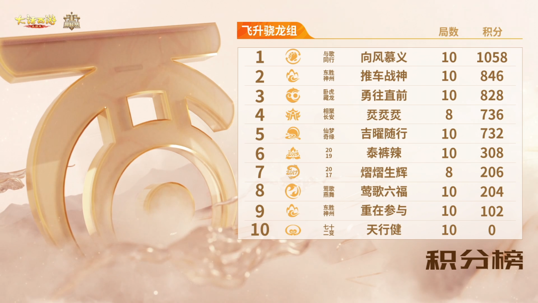 三尺青峰酣战正浓,热血激昂追鹿巅峰!群雄巅峰赛S10于昨天(11月12日)开启第二周常规赛的第一轮对战,179惊龙组、飞升骁龙组的少侠在赛事当中,展现出了不可匹及的精湛水准! 惊龙组大展神威 虎跃龙骧快意江湖 在昨天的对战中,179惊龙组由『乐逍遥』服务器【南征】对战【闲云野鹤】,【小七战队】对战【我爱吃肉】,【一周七天】对战【桃花朵朵】,【风清云淡】对战【清辉夜凝】。 截至目前,179惊龙组群雄巅峰赛S10总积分如下图所示: 179惊龙组群雄巅峰赛S10昨日(11月12日)赛果 经过一段时间的燃情对决,179惊龙组的少侠面对第二周的赛事显得游刃有余,精彩对战可圈可点,让人回味无穷! 骁龙组气势恢宏 豪情万丈谁主浮沉 飞升骁龙组的对决,昨天由『卧虎藏龙』服务器【勇往直前】对战『2017』服务器【熠熠生辉】,『相聚长安』服务器【烎烎烎】对战『仙梦奇缘』服务器【吉曜随行】,『东胜神州』服务器【重在参与】对战『莺歌燕舞』服务器【莺歌六福】,『与歌同行』服务器【向风慕义】对战『七十二变』服务器【天行健】。 截至目前,飞升骁龙组群雄巅峰赛S10总积分如下图所示: 飞升骁龙组群雄巅峰赛S10昨日(11月12日)赛果 飞升骁龙组的少侠从来不会让人失望!每一场对战,都镌刻着属于高手之间的热血拼搏,每一次出招,背后都蕴藏着意想不到的战术理念! 火热赛事激情燃战今天17:00聚焦精彩对决 群雄巅峰赛S10将于今天(11月13日)17:00开启新一轮的火热对战,159潜龙组、飞升骁龙组两大组别的参赛战队,将会在今天给大家带来什么样的惊喜表现? 159潜龙组的对战,由三秦大地服务器【童心未泯】对阵【听闻远方】,【早早早安】对阵【钢铁大队】,【北伐】对战【T1】,三秦大地服务器【山川如酒】对阵天工开物服务器【永恒】。 飞升骁龙组的赛事将于19:00开启,届时将由相聚长安服务器【烎烎烎】对阵2019服务器【泰裤辣】,东胜神州服务器【推车战神】对阵卧虎藏龙服务器【勇往直前】,与歌同行服务器【向风慕义】对阵仙梦奇缘服务器【吉曜随行】,东胜神州服务器【重在参与】对阵2017服务器【熠熠生辉】。 今天(11月13日)17:00,群雄巅峰赛S10燃情开赛!少侠可以前往游戏中,观看精彩对决,更有机会赢取高级藏宝图、龙之骨、聚魄丹等游戏好礼! |