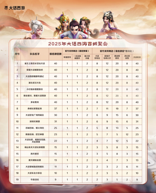 2025年百城聚会第一期总计收到超百支队伍报名,其中创意聚会队伍超50支!我们鼓励各位玩家提出更多有意思的聚会创意,故经综合考虑和评估后,首期入选19支创意聚会队伍,总计覆盖了521名大话兄弟,对此公布如下: 与此同时,在活动过程中,我们也收到了来自各位兄弟的不少疑问,今天我们将对高频提问进行统一解答: Q1:入选条件是什么?我们队伍人数那么多,为什么不选我们队伍? A1:本次官方活动公告为创意聚会优先入选,从未提及队伍人数相关。100多支队伍中,总计有50多支创意队伍,期待兄弟们提出更多聚会的创意想法。 Q2:我是创意队伍,为什么没选我们? A2:综合考虑创意重复、城市重复、方案完整度、创意落地成本合理性后进行筛选。为方便各位少侠理解,给到玩家队长报名时填写的真实正面案例: 正面案例玩家报名信息填写如下: 聚会地点:xxxxx 聚会内容:大话西游角色扮演大话杀主题(菩提祖师:每晚可查验一人身份;观音菩萨:玉净瓶甘露可救一人,紫金铃毒火可杀一人;杨戬:在被牛虱杀死后可用技能两尖三刃刀带走一人;牛虱:在夜晚可商议刀走一人; 聚会预算:2000元/15人 官方反馈:通过。唯一创意队伍+该城市唯一队伍+预算合理。另告知队长,按报销规则可把人均提到150元,再给额外人均10元创意落地费。因此如队伍认证了15名玩家且到场15名玩家,可最高报销到2400元。 Q3:我们城市就我一个队伍,而且我的创意和第一期入选队伍差不多,为什么选他不选我? A3:所有创意队伍均有联系优先级,如本次未入选请勿灰心,下次可按以下流程完善聚会说明 方案完整度:如方案内容仅一句话:一起挖宝图。和方案内容为:让所有参与聚会的玩家自带X张宝图看谁的总价值更高,按排名进行周边奖励分发。后者联系优先级更高 预算合理度:如方案创意为大话歌王争霸赛,方案预算为:聚餐人均150元+KTV套餐1000元+人均酒水300元。通过美团检查当地KTV套餐后发现1000元套餐已含基础酒水,且额外的酒水金额无关歌王争霸赛创意达成。将被视作不合理预算,联系优先级降低 创意重复度:如本次超10支队伍的创意聚会均类似时光巡礼:几个小互动结束后就餐。此时将结合是否城市唯一队伍增减优先级,如非城市唯一队伍优先级下降 其他优先级影响因素:除方案完整、创意不重复、预算合理、城市唯一队伍外,还有队长优先级。综合所有线下聚会活动情况后,想鼓励更多大话兄弟日常也能聚起来,因此新人队长和材料提交准确的老队长均有优先级加成 |
