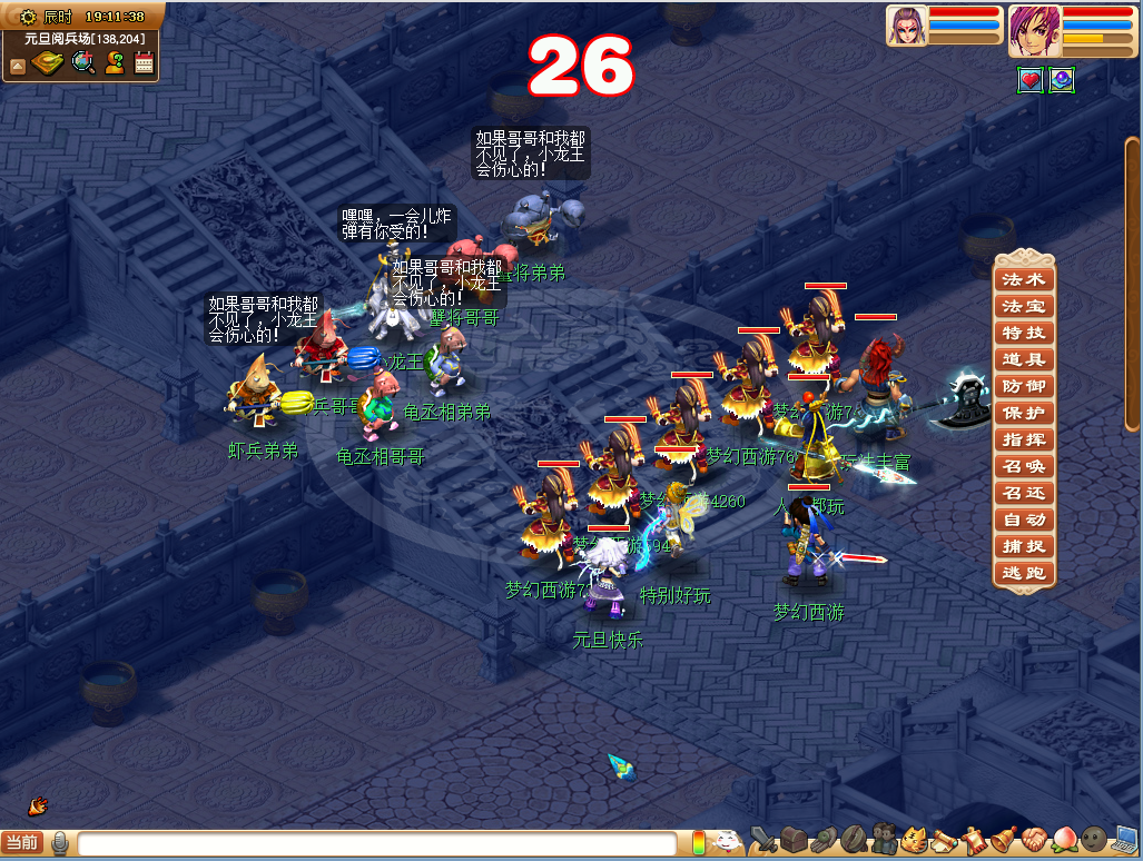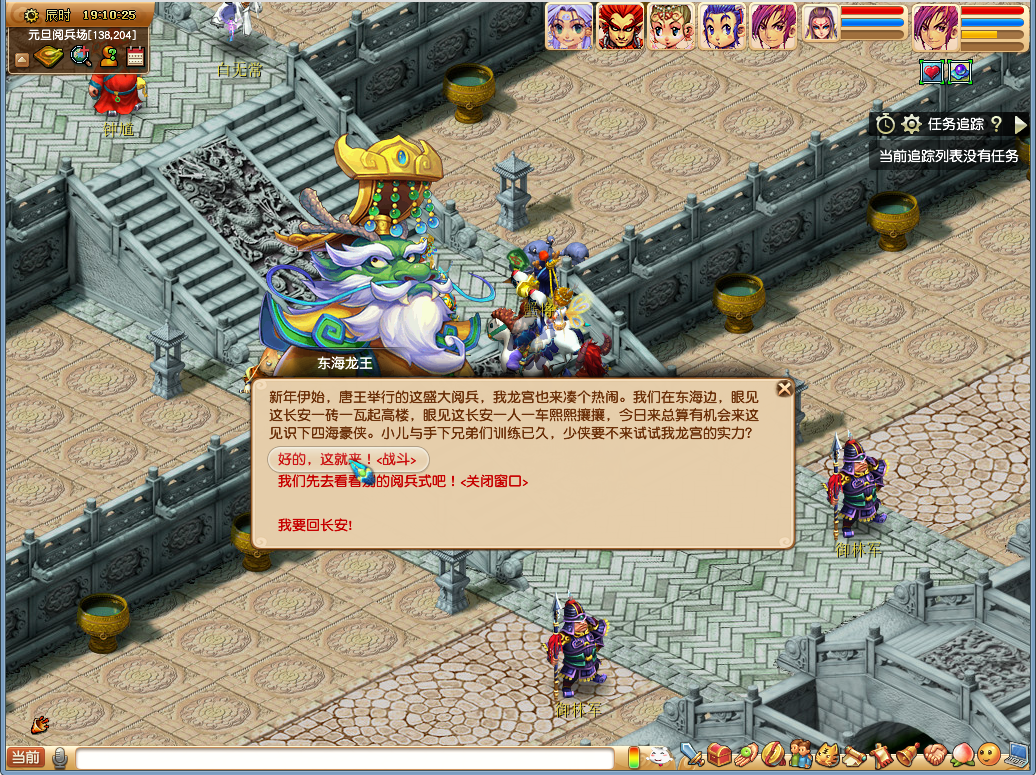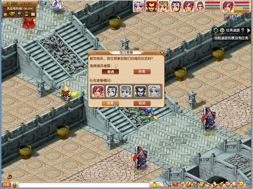 | 佳年大阅兵 活动时间 2017年12月30日12:00至2018年1月3日12:00 领取要求 等级≥50级,队伍人数≥5人 玩法介绍 新年伊始,万象更新,唐王在阅兵场组织了一场规模盛大的阅兵仪式,彰显大唐国力昌盛。少侠需要用自己的实力,来检验战士们的能力! 活动期间,玩家可以在长安城(240,110)元旦娃娃处选择“佳年大阅兵(挑战怪)”选项,前往演兵场,与来自东海,地府和大唐的侠士进行切磋。挑战玩法共分“普通”和“困难”两个难度,每个难度下每天均可以获得1次奖励,但挑战次数不限。在所有队员完成当前选定难度的所有挑战之前,不可以开启下一难度的任何怪物的挑战。挑战成功可以获得丰厚的经验、金钱和随机元旦积分奖励。 |