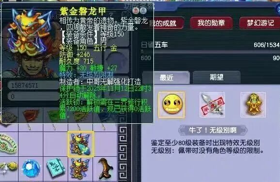 昨天,梦幻西游【龙拳】开放了109级,区内的少侠们为了携带帅气的召唤兽,纷纷投身炼妖鬼将的热潮,旭旭宝宝也在第一时间加入战场,备足了大量胚子!接下来,就看看宝哥的炼妖成果吧。 一、旭旭宝宝勇夺龙拳第一壁垒宠&满天铠甲 为了追求多技能鬼将,宝哥准备了几十组高质量胚子炼妖。不过,就炼妖结果来看,这波只炸出了一只12技能、资质还算不错的吸血鬼! 随后,他决定将这只吸血鬼打造成耐攻壁垒形态。经历几十本书的循环打书,终于顺利全红。过程中,宝哥还领悟出技能格子的摆放规律,被不少水友赞为“天才”。凭借高资质面板和出色的成长值,这只吸血鬼足以问鼎龙拳第一壁垒宠。 不过,仅凭一把神剑还无法完全释放宝哥的PK实力,于是他坚持亲自鉴定其他部位的装备。开局铠甲部位,就直接炸出极限防御、力敏双加属性的极品!放眼整个龙拳,这件铠甲堪称第一物理系神装。 紧接着,宝哥又鉴定出一件专用铠甲,基础属性超越极限218点,可惜双加中歪了一条魔力属性,否则将是真正的毕业装备。 权衡之下,宝哥最终还是选择了那件力量属性更高的衣服,并消耗18枚宝珠,为其点化了满天套装! 二、150极品无级别铠甲诞生 昨晚,有位少侠在鉴定150级装备时,竟喜提“牛了无级别”成就!这件铠甲虽然携带了国标防御,但附有高达57点的魔敏双加属性,更难得的是后续有极大的熔炼空间。一旦将属性熔炼至极限,它完全有实力跻身一线装备行列,尤其适合X9级的神木、魔王、东海渊等法系门派使用。 凭借如此极品的属性,这件铠甲的价值自然不菲,市场估价至少达到六位数。 三、道人连送3本高级金蝉兽诀? 在今天游戏维护更新后,阔别已久的云游道人以“感应魔石”玩法正式回归。一位玩家运气爆棚,在同一轮激活5个红色魔石的过程中,竟连续炸出三本高级金蝉兽诀!要知道,该兽诀在现阶段仍是价格最贵的高级兽诀之一,仅凭这一波,玩家至少赚取了1500元。 以这样的手气来看,未来拿下超级兽诀,恐怕也只是时间问题了。 四、到嘴的烤鸭飞走了 投稿玩家:HYQ 【灿若星河】有位小伙伴投稿分享了一桩场景趣事。中午他正五开刷着飞贼,一时忘了点摄妖香,结果才切入战斗,就迎面遇上了一只变异野猪! 然而,他当时没太集中注意力,手速也没跟上,取消自动操作不及,竟含泪把这只变异给秒飞了。眼睁睁看着近千万从眼前溜走,小伙伴当场戴上了“痛苦面具”。 今日的新鲜事到此结束,感谢各位收看。 编辑:百晓生
