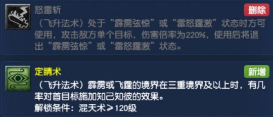 激动的心,颤抖的手,大家期待的2025年10月调整已正式登录开发测试。 前线小钻风小美限时回归,为各位带来第一手情报!今天,咱们来介绍天宫的调整内容。 友情提示,前方高能,雷霆战神盛大登场! 【“踏雷天尊”流派调整】 先说说大家熟悉的魔天宫,本次调整中,“踏雷天尊”流派删除了飞升法术“金刚镯”,新增了飞升法术(被动)定睛术,效果如下: 经脉技能“频变”重做,改名为“天打雷劈” 经脉技能“感电”调整 经脉技能“乱流”调整 【“霹雳真君”流派重做】 接下来,让咱们用万众期待的心情一起了解天宫“霹雳真君”流派的重做内容,欢迎“雷霆战神”盛大登场。 师门技能“傲世诀”调整,由“增加角色气血上限”调整为“增加角色命中” 删除师门法术“霹雳弦惊”、“雷怒霆激”、“风雷斩” 新增师门法术“霹雳·一重境” 新增师门法术“霹雳·二重境” 新增师门法术“霹雳·三重境” 新增师门法术“飞霆·一重境” 新增师门法术“飞霆·二重境” 新增师门法术“飞霆·三重境” 删除飞升法术“怒雷斩”,新增飞升法术(被动)定睛术,效果如下: 师门法术“天雷关注”效果调整 师门法术“天神护体”效果调整 最后依然是大家最关心的“霹雳真君”流派经脉技能全展示,不要眨眼哦。 第一排经脉技能依次为“霆震”、“疾雷”和“激越” 第二排经脉技能依次为“存雄”、“余韵”和“慨叹” 第三排经脉技能依次为“惊霆”、“电掣”和“电光” 第四排经脉技能依次为“雷吞”、“苏醒”和“天劫” 第五排经脉技能依次为“神采”、“劲健”和“啸傲” 第六排经脉技能依次为“起搏”、“气势”和“洞察” 经脉大招“渡劫天雷” 好啦,以上就是十月调整中关于天宫的内容,更多精彩爆料请持续关注梦幻西游公众号。 编辑:百晓生