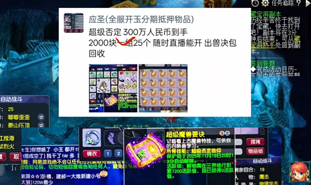 梦幻老玩家,邀请你收看最新一期游戏资讯。 TOP1:道人首本超否定300头牛成交? 最近梦幻西游里,两本超级兽诀身价如同坐了火箭一般暴涨。其中一本高级神迹经全新改动后化为主动技能,能在关键时刻把队友拉起,还让其瞬间满血复活,。另一本超级否定信仰同样热度爆表,超否定宝宝一直是服战赛场上的霸主,且一只难求。道人刚上线时,就有商人豪掷200万直接预定。昨日,秦淮风光服务器的“白衣接化圣”刷任务时喜得此兽诀,堪称今年最大欧皇,如今已被神豪以300万R的高价收入囊中! TOP2:旭旭宝宝再炸100愤怒腰带 近期,宝哥在直播过程中,针对网络上流传的“爆总离队”这一不实消息进行了郑重辟谣。他明确表示,爆总的硬件和宝宝实力依旧处于第一梯队,而且爆总始终保持着积极更新的状态,在后续直播的开箱环节里,宝哥的运气相当不错,直接开出了小白龙与神柚,收获满满,赚了一波热度与欢呼。而在帮毕总鉴定装备时,更是惊喜连连,收获了一条愤怒腰带,瞬间引爆了直播间的热烈氛围。 TOP3:风少合出11技能完美雷鸟人 在【畅玩服-齐天大圣】里,炼妖出实力强劲的宝宝可真是稀罕事儿。这不,风少近期就成功合出了11技能雷鸟人,它的速度资质高达1570点,直接拉到了满值。 风少兴致勃勃,当场就在直播间给这只雷鸟人打书,一番操作下来,成功将其打成11技能全红,还特意打了高级隐身。这只雷鸟人定位为千速宝宝,再配上风少女儿村那件10段黑宝石的无级别鞋,速度抢占第一,比武先手优势尽显! TOP4:10月大改放出 维护结束后,十月门派大改内容正式亮相,与测试区情况基本相符。此前备受争议的九黎城二次调整,应该是板上钉钉了,毕竟它在称霸多年后让位也在情理之中。大唐官府的“勇念”经脉下放为门派被动,新增的破血经脉或许会成为最大赢家。不过,九黎城虽被削弱,但未必就此一蹶不振,感觉在三攻阵容中仍有一席之地。而未来九黎城若开放门派转入,不知道大家有何看法呢? 编辑:百晓生