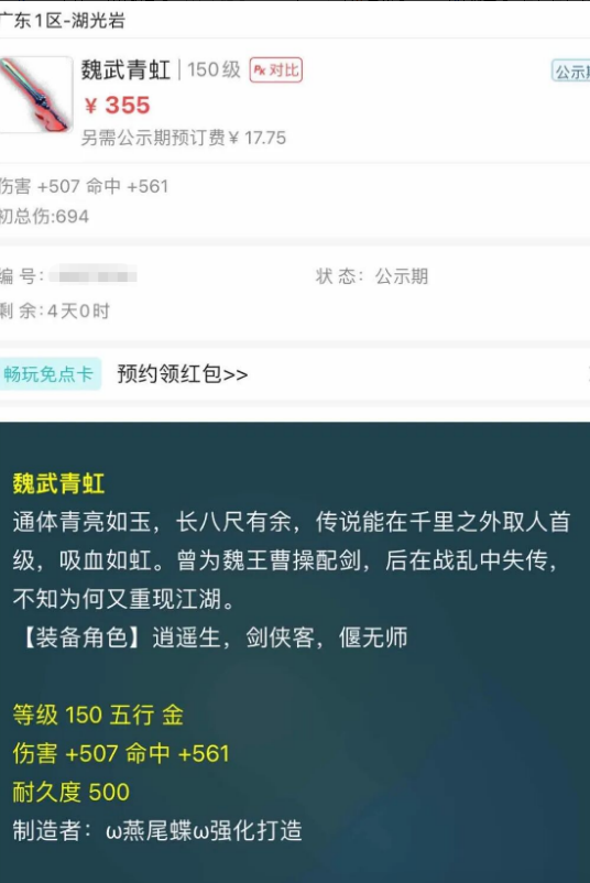 大家好,马上进入今天的精彩梦幻西游资讯~ TOP1:遇见一把150级魏武青虹 藏宝阁看到魏武青虹不难,但是150级的魏武青虹,真的全梦幻都非常的少见。当前版本里,150级剑强化打造的造型是霜冷九州,外观上还冒着丝丝寒气。造型,当然是远远超过鱼肠、湛卢、魏武青虹、灵犀神剑这些,就连国标无级别都是另一个档次的价格。这把武器难得一见的点,是因为属于多年前刚开放150级武器还没有新造型时打造出来的。伤害507、命中561、耐久度500,像是崭新出炉从来没使用过。 TOP2:一场战斗3只广目巡守 这样的开局,那绝对是无敌般的存在。一场战斗战斗出3只广目巡守,这换到普通稀有召唤兽,去D5里遇3只画魂都不容易,这概率怕是不止万分之一。野生的价格在1000W,也就是说,玩家不需要使用超级金柳露,这场战斗只需要慢慢的抓捕,3000W游戏币是稳稳到手的。抓完直接下号,后续的战斗肯定不会再出广目,或者转到鬼市去碰碰谛听。什么样的运气,能造就这样的开局? TOP3:神级大佬归来!旭旭宝宝透露,紫禁城爆总入驻齐天大圣 齐天大圣服务器一开区,各路神豪加入的消息纷纷传递开来。不管是不是真的,但就连旭旭宝宝这种大主播都在直播中说到,紫禁城前任城主爆总,也要来一起加入这个队伍。不过,旭旭宝宝说这是高必在跟宝哥私下吃饭时说的。看样子这个服务器将会引起不小的轰动,甚至超越建邺城。要知道,爆总的实力完全是可以一人扫光整个区。更何况,还听说有萌大奶、会长等,以及各路梦幻主播都在抢齐天大圣服务器绿通。旭旭宝宝百万直播人数的影响力之下,肯定会掀起不小的波澜。甚至,他还准备联合大闹天宫服务器的PK跨服,准备“大马猴杯”的PK比赛。想想都精彩! 编辑:百晓生