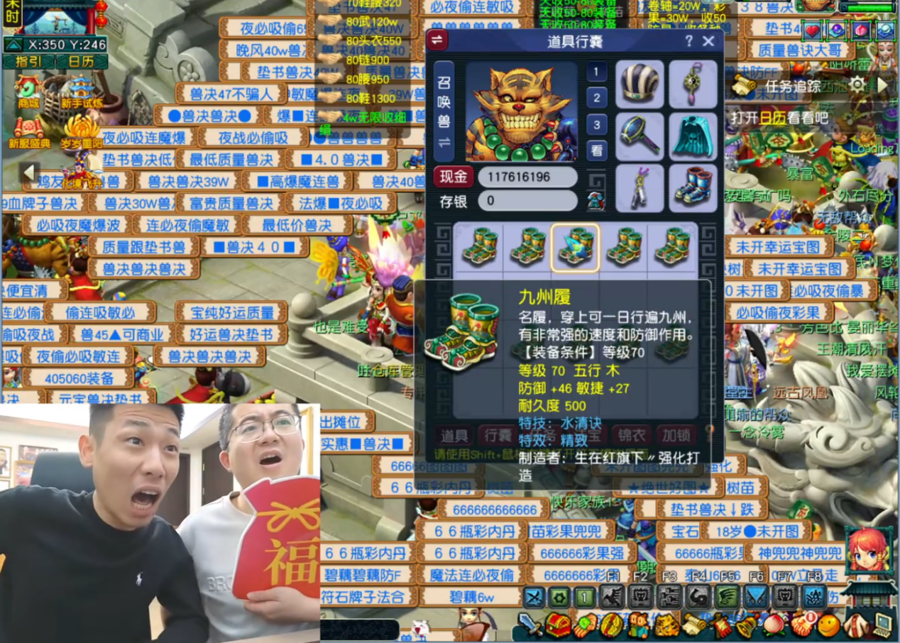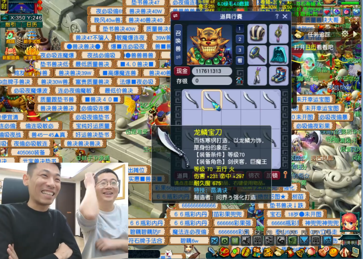 昨日,为了冲刺【齐天大圣】79级比武大会的状元宝座,旭旭宝宝不仅大力更新硬件,还一举扫光市场上所有未鉴定装备,准备亲手打造神装。接下来,就让我们一起回顾他的鉴定高光时刻。 一、旭旭宝宝买齐天最牛无级别头 直播一开始,宝哥便宣布自己购入了一件大宝贝,为70高防无级别头盔,并亲手为其开孔和镶嵌12锻红玛瑙。 不过,仅凭一件神装还远不足以支撑夺冠目标。随后,宝哥开始大量鉴定70级装备。在主用的斧头与锤类武器上,他一直未能获得满意的属性,直到鉴定铠甲部位时,才终于炸出一件满防且附加15点力量的铠甲,堪称物理系的毕业装备。 接下来的未鉴定点化套装环节,宝哥持续发力,又收获一件123高防的变身铠甲。 就连他一直心心念念的晶清特技也终于圆梦,只可惜出现在一把国标伤害的白板大刀上,价值有限。 在最后的鞋子环节,宝哥陆续鉴定出多条给力蓝字,其中最为炸裂的是一双精致加水清双特效的鞋子,预估价值接近五位数。 总体来看,宝哥这次鉴定手气相当不错。期待他后续能继续打造出更多自己适用的神器! 二、畅玩服第一5孔无级别玉清面世 昨日,【龙卷雨击】服务器一位少侠在鉴定130级装备时,不仅触发了“三蓝字眼花”成就,更一举斩获“牛了无级别”!这是一件初防74的无级别玉清诀头盔,打完15锻月亮石后总防御高达254点,抗性恐怖如斯。 玉清诀特技能为全体队友解除异常状态,使这件头盔即便放在时间服,也足以成为X9高端联赛中的抢手神装。若置于畅玩服中,更是价值连城,预估价格可达七位数级别。 三、风少合出建邺城第一死亡法防龙龟 昨日,随着畅玩服首部资料片【化境飞升】全服上线,众多老板纷纷投入炼妖,强化自身实力。风少不惜重金,花费2.8亿购入一组4技能法防龙龟与8技能死亡吸血鬼的巅峰胚子,在吃完珍经之后,便向翻页双特殊宠发起冲刺。 尽管最终未能如愿合成翻页宠,但他成功炸出一只10技能双特殊龙龟,且防御资质与成长均十分出色。风少难掩激动,当场开了一罐可乐庆祝! 随后他趁热打铁,果断为这只龙龟拍上兽诀。最终打成了上图的形态——3本蓝书均对PK有帮助,足以作为过渡宠使用很长一段时间。 四、代言人杨洋大战射手王微笑 畅玩服将于10月31日重磅开启【钓鱼岛】与【凌云殿】新服。为庆祝新服上线,官方特邀代言人杨洋与知名电竞选手微笑担任嘉宾,各自组队上演一场激烈对抗PK赛。 杨洋战队阵容包括:人气主播老王、超级明星玩家崔、美女帮战指挥小阿雾,以及知名主播小霸王;微笑战队则由知名服战大佬赵山河、美女帮主年年悦意、呆宝与知名主播梦幻西游富贵组成。 感兴趣的小伙伴们,记得在周五晚7点锁定官方指定直播平台,共同见证这场精彩的PK大战! 今天的新鲜事就到这里了,各位小伙伴如果在游戏内、外碰见什么有意思的事情,都可以给我们投稿哦! 编辑:百晓生
