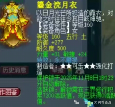 二玩家 鉴定出了 160级力敏双加 初防 277 永不磨损 女衣服,也是发财了. 编辑:百晓生