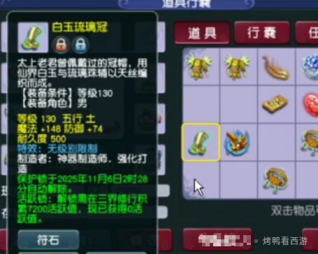 二玩家 鉴定出了 130级无级别 白班男头,也是发财了.