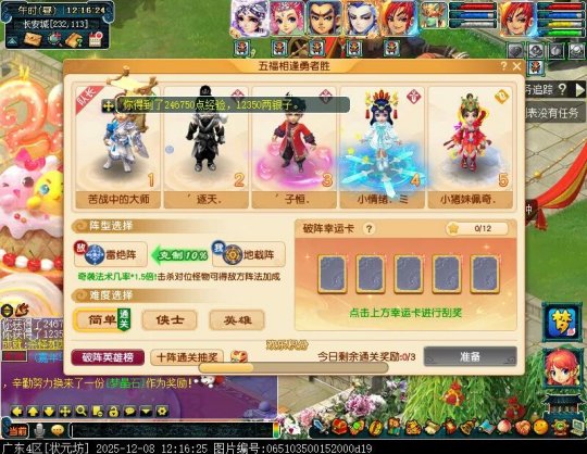 12月8日12:00,梦幻嘉年华的所有阵法挑战均已解锁,咱正好把余下的阵法挑战一起测了,因为即将得知所有怪物特性,之后若大家将其当成获取欢乐积分拉满刷的话,建议日常挑选三个物理怪比较少的阵法前往挑战,比如云阵,封住主怪基本是0耐久通关的,也算降低损耗拉高收益吧! 挑战鸟翔阵。 金身罗汉:中速化生,会金刚护法。 普通炎魔神:魔王,会飞沙走石。 粉色炎魔神:神木,会落叶萧萧。 紫色天降:狮驼,会变身,建议封印。 蓝色天降:大唐,会横扫。 龙龟:会上古灵符(随机类型法术)/水清随机龙龟,好奇怪,我没封它啊?它玩预判? 连小贴士都懒得提示了,那我们莽就完了! 挑战蛇蟠阵。 大力金刚:凌波,被封印。 净瓶女娲:会水清其他怪物,但是很奇怪,大唐扫完要休息,她去水它。。。 无常鬼差(白):地府,会白爪狂杀。 天降:大唐,会横扫。 炎魔神:神木,会落叶萧萧。 雷鸟人:中速怪,开场雷击,准备日月乾坤三回合。 狂豹:会力劈华山。 建议先封杀鬼差和大力,鸟人不用管,秒几下没了。 挑战鹰啸阵。 金身罗汉:中速化生,会金刚护法/推气过宫3000+。 净瓶女娲:中速女儿,会雨落寒沙/水清被封单位。 大力金刚:凌波,可封印,被解封后普攻。 雨师:中速方寸,会失心符。 炎魔神:龙宫,会龙卷雨击。 狼:中速,会破血,抗性下降,伤害提升。 建议优先封杀大力、雨师,小贴士所说的不能多留,应该是指留得越久,耐久掉得令人更心疼。 挑战雷绝阵。 白色净瓶女娲:普陀,会五行法术。 绿色净瓶女娲:普陀,会五行法术。 雨师:方寸,会失心符,建议封印。 炎魔神:魔王,牛劲后飞沙走石。 天将:狮驼,变身后鹰击,建议封印。 灵鹤:凌波,开始不会动,当前喊话会准备三回合对随机幸运玩家使用天崩地裂(把自己的快乐建立在别人的痛苦上?你们的幽默我们不太认可),无法封印。 雷鸟人:凌波,会裂石。 这场除了打耐久的怪比较多外,难度不大。 最后这个兑奖环节,无论你选择的是何种难度,都有较低几率额外获赠一个珍贵抄本的,算是意外之喜吧! 编辑:百晓生