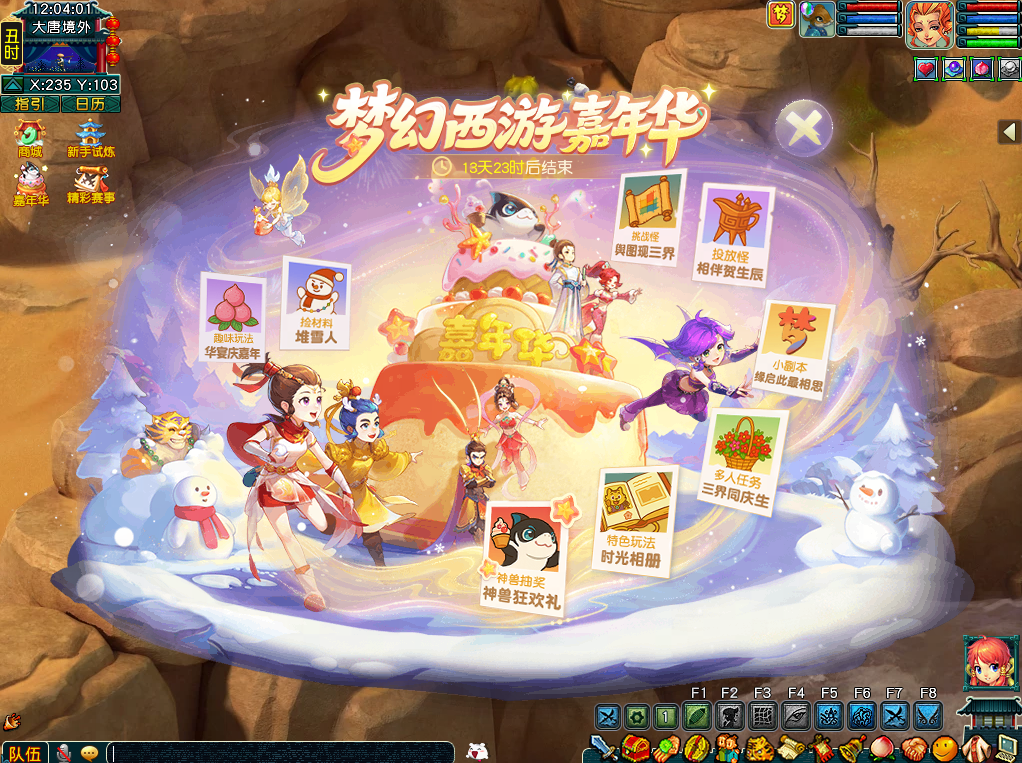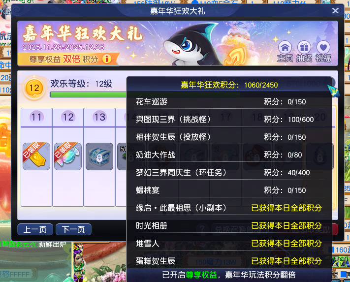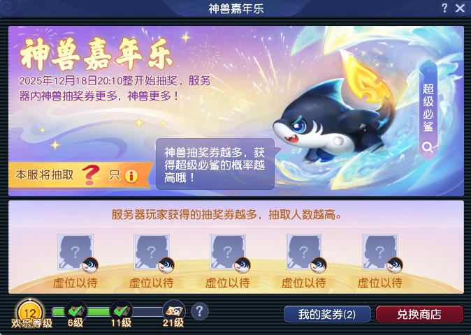 2025年12月12日至12月26日,畅玩服嘉年华迎来第二阶段,包括环任务、小副本、投放怪、挑战怪、相册映流光、游园行夜宴和神兽嘉年乐共7种玩法。接下来让我们一同去看看吧! 【环任务】 嘉年华环任务的第二阶段为“三界同庆生”,活动时间为12月12日至 12月26日等级达到30级的少侠可组队前往嘉年华仙子处领取环任务,每天仅前10环任务可获得奖励,11环及以后无奖励。 【小副本】 嘉年华庆典小副本的第二阶段为“缘起·此最相思”,活动时间为12月12日至12月26日。 等级达到50级的少侠可组队前往嘉年华仙子处开启小副本,小副本战斗有一定难度,战斗死亡计算为非正常死亡,原地复活无损失。完成小副本将获得一次开启转盘奖励的机会, 【投放怪】 嘉年华投放怪的第二阶段为“相伴贺生辰”,活动时间为12月12日至12月26日。活动期间,每小时的15分和45分时,各个种族的使者携带祝福出现在三界各处。届时,等级达到30级的少侠们可组队进行挑战。每名玩家每天可获得5次各族使者与1次各族精英使者的奖励。 【挑战怪】 每周一至周六可以在特定位置挑战一种阵法护法,共有守卫、精英守卫、护法、精英护法4种不同难度。等级达到50级的少侠可组队前往挑战,目前正处于第三周进度,具体地点如下: 每日首次通过各个难度的挑战,除了获得经验、金钱、道具和嘉年华狂欢积分奖励外,还可获得特定的神君信物。 集齐8个神君信物后可获得挑战神君的机会(朱紫国110,68处),击败神君将获得嘉年华狂欢积分与丰厚的奖励,同时每周日第一次成功挑战神君不需要消耗信物。 【相册映流光】 “相册映流光”是嘉年华庆典的单人特色玩法,共包括“时光相册”、“堆雪人”、“蛋糕贺生辰”和“奶油大作战”四个小游戏玩法。 “时光相册”:等级达到30级的少侠可前往嘉年华仙子处领取时光相册,前往三界各处搜集散落的相片线索,点亮过往的回忆!该玩法会累计进度,如果之前有遗漏没点亮,少侠可一次性做任务做到最新进度,每一次完成任务都有丰富的经验和储备金。 “堆雪人”:等级达到30级的少侠可通过上交雪人材料的方式建造雪人。建造雪人不仅有经验奖励和活动积分,每成功建成一个雪人,还会提高所有少侠在场景战斗中遇到宝宝的概率! “蛋糕贺生辰”:等级达到30级的少侠可点击嘉年华生日蛋糕领取一份小蛋糕,使用后可获得“生日祝福”状态,使少侠在嘉年华环任务、小副本中造成的伤害结果提高15%。少侠可在刷活动前领取蛋糕,以便降低任务难度。 “奶油大作战”:等级达到30级的少侠每天活跃度达到100后,可额外领取一份嘉年华奶油蛋糕,将小蛋糕扔给好友后,不仅可以获得经验、储备金、欢乐积分奖励,还可以抹花他们的脸呢! 【游园行夜宴】 “游园行夜宴”的第二阶段为“蟠桃宴”和“花车巡游”,活动时间为12月12日至12月26日。 “蟠桃宴”活动期间(每天19:40至19:50),每隔一分钟天宫会洒下无数蟠桃,天宫(195,37)的蟠桃树处还可以领取专属蟠桃。蟠桃分为三千年蟠桃、六千年蟠桃和九千年蟠桃。玩家每天最多可以在蟠桃盛宴中领取三个蟠桃(专属蟠桃不包含在内)。 “花车巡游”活动期间,每天19:15至19:30在长安城(56,15)出现嘉年华花车,少侠可跟随花车前进,点击花鼓获得祝福和礼物,每名玩家每天最多可获得20次奖励。 【神兽嘉年乐】 今年畅玩服嘉年华庆典的庆典神兽为“超级必鲨”,各位少侠参与“神兽嘉年乐”有一定几率获得“超级必鲨”。活动期间,各位少侠体验嘉年华各种玩法均可获得嘉年华狂欢积分。获得足够嘉年华狂欢积分后,大家可以在“嘉年华狂欢大礼”中领取“祈福券”和“祈福神石”。 2025年12月18日当晚20:10,拥有祈福券的少侠有机会可以获得“超级必鲨”。除此之外,使用祈福石洗炼召唤兽也有概率洗炼出超级神兽。 以上就是2025年畅玩服嘉年华庆典第二阶段全部内容,祝各位少侠期间收获满满,喜提神兽! 编辑:百晓生
