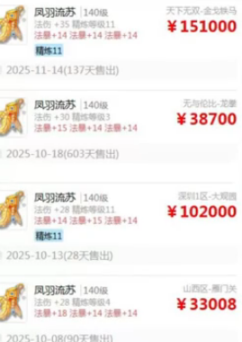 大家好!「烤鸭看西游」每天为你带来不一样的故事。 一、140三法暴耳饰开始涨价 有玩家发现,近期藏宝阁上的140级三法暴耳饰开始涨价了,感觉是PK玩家越来越重视的结果。不知道大家怎么看? 二、逆袭150野兽宝珠生不逢时 玩家发传音展示所鉴定的150武器,表示生不逢时!原来是炸出高伤613且体魔双加61的野兽宝珠,毕竟转换特技关闭了,不然又是一把法系神器。 三、齐天D总给无级别腰带打15锻黑宝石 【齐天大圣】爆总队友D总的狮驼岭给100级无级别腰带打上了15锻黑宝石,速度优势遥遥领先! 四、苦难展示奇袭玉魄和净台猴子 苦难也是好起来了,先是展示双法防一防御带2.1%奇袭法术的玉魄。 还打成9JN净台金蝉猴子,手气还行。 编辑:百晓生