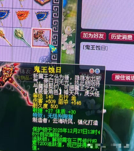 大家好!「烤鸭看西游」每天为你带来不一样的故事。 1、伦总580牛买第一穿刺晶清男头 【钓鱼岛】伦总新晋的花果山以580牛的价格拿下秋杀第一晶清穿刺男头。 目前已经是第一弓箭加孤品晶清穿刺男头,剑指全服第一花果宝座。 2、风少神赋打上超必杀和超强力 风少直播通过神赋模式,给16JN净台神宠分别打上了超级必杀和超级强力兽诀,真是天佑菠萝。 3、明秀园玩家圆梦无级别 【明秀园】服务器的玩家仅鉴定三把140武器就喜提了年终奖。他炸出了伤害509、命中546且体敏双加57的无级别锤子,建议要吃点长寿面补补。 4、曲阜孔庙20W收上古灵符 曲阜孔庙服战队为了备战12月份武神坛,已经开始20W梦幻币大量收购上古灵符。 感觉是冲着3000W战神去的,我菠哥有危机了。不过这竞争也是很激励啊。 编辑:百晓生
