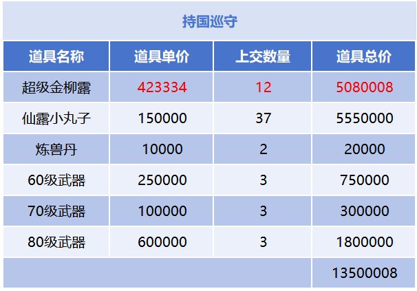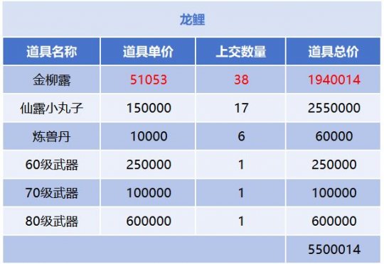 前段时间为大家介绍了一些“藏在仓库里的隐藏宝贝”,妥善处理会是一笔不菲的财富。 推文发布后有玩家给小帅留言,表示“仓库最大的敌人”绝对是“卖之无味,丢之可惜”的金柳露。 悄悄告诉各位玩家,咱梦幻存在着一个“宝藏级别”的任务,这项任务可以让咱们的金柳露“价值翻倍”! 灵兽绘卷任务 等级达到60级的玩家可前往傲来国(112,90)处找神笔马良领取灵兽绘卷任务。具体如下: 完成绘卷任务后,咱们可以得到领取任务时展示的召唤兽作为奖励(各项资质、成长以及技能都是固定的)。 灵兽绘卷任务需要上交大量金柳露或超级金柳露作为任务道具。咱们正是通过灵兽绘卷任务让金柳露实现“价值翻倍”!从此告别“卖之无味,丢之可惜”的“金柳露焦虑”,解放仓库,丰盈钱包! 温馨提示:领取灵兽绘卷任务时需携带点睛画笔,咱们可花费50000两金钱找神笔马良购买。另外,归还点睛画笔时神笔马良会退回50000两金钱,但72小时内无法再次领取。 操作技巧 咳咳,介绍完理论,接下来说实操! 以小帅所在的服务器为例,一只3技能鼠先锋的价值约为1500000两金钱。咱们领取的鼠先锋灵兽绘卷需要上交8个金柳露、3个仙露小丸子和9个炼兽丹。 另外,仙露小丸子和炼兽丹能在宝石商人处无限量购买,且物品价格不会受到购买次数的影响。 接着,小帅掐指一算: 可以看到,此时此刻,金柳露的价值竟高达120000两金钱! 灵兽绘卷的选择 那么问题来啦,哪些灵兽绘卷适合“处理”金柳露呢?小帅认为,除了鼠先锋外,龙鲤、泪妖和日游神都是不错的选择。 注意:不同服务器的物价各不相同,各位玩家体验灵兽绘卷时,还要根据自己所在服务器的实际情况进行选择。 龙鲤 小帅所在服务器的4技能龙鲤价值约为5500000两金钱,大约需要38个金柳露、1个60级武器、1个70级武器、1个80级武器、17个仙露小丸子和6个炼兽丹。 掐指一算,1个金柳露的价值约为51053两金钱。 泪妖/日游神 小帅所在服务器的5技能泪妖或日游神价值约为1500000两金钱,大约需要13个金柳露、5个仙露小丸子、11个炼兽丹和1个泪妖或日游神(可以自己抓)。 掐指一算,1个金柳露的价值约为49231两金钱。 除鼠先锋、龙鲤、泪妖和日游神这四种需要消耗金柳露的宝宝且有着不错市场前景的宝宝外,咱们也可以通过灵兽绘卷让超级金柳露实现价值翻倍。 举个例子,小帅所在服务器的3技能携带须弥真言的持国巡守价格约为13500000两金钱,大约需要12个超级金柳露、3个60级武器、3个70级武器、3个80级武器、37个仙露小丸子和2个炼兽丹。 掐指一算,1个超级金柳露的价值约为423334两金钱。 好啦,今天的推文就到这里,咱评论区不见不散哦。 编辑:百晓生