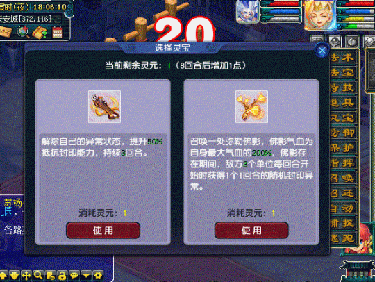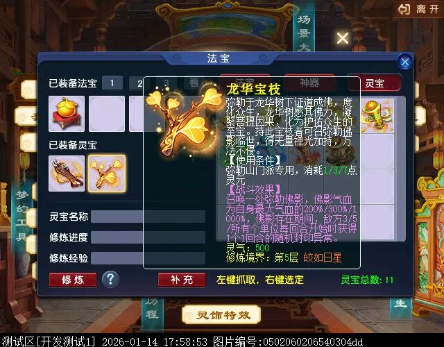 门派灵宝为“龙华宝枝”,使用后可召唤出弥勒佛影,该佛影存在期间,每回合会自动对敌方多个单位附加封印,目测未来又有一场新的攻防战。