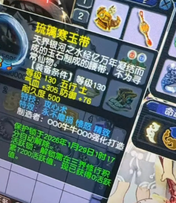 大家好!「烤鸭看西游」每天为你带来不一样的故事。 1、玩家鉴出120不磨罗汉武器 一位玩家成功鉴定出一把120级永不磨损罗汉金钟武器,伤害388、命中577,并单加20点敏捷,堪称129级固伤门派的“小姐妹”任务利器! 2、畅玩服581伤神佑流云锤面世 在畅玩服,有玩家成功鉴定出一把140级神佑流云锤,并单加45点力量,属性颇为亮眼。 3、四个蓝字通通都给力 一位玩家成功鉴定出一条130级四蓝字腰带——[攻心术]、[永不磨损]、[愤怒]、[精致],堪称一举发财!无论是日常任务还是玩家对战,这条腰带都能完美适配。 4、130级无级别光辉腰带出土 最近,130级腰带似乎格外容易出珍品!一位玩家展示了自己鉴定出的130级无级别光辉腰带,堪称直接实现“发财梦”。 编辑:百晓生