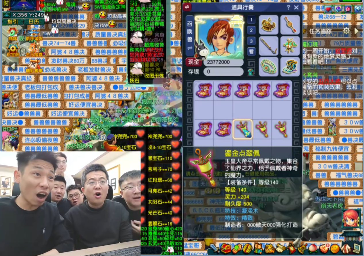 又到年末, 坐拥上亿资产的旭旭宝宝在大本营“广饶”举办年会,今年更是力邀旗下多位梦幻人气主播出席,畅玩服知名指挥“秦风”也在其中。为增加气氛,宝哥直接安排一场盛大的直播,并准备近千件5孔未鉴定装备,让多位主播试试手气。接下来,就让我们来看看哪位主播的手气最旺。 一、旭旭宝宝鉴出龙拳967伤第一秋水扇 “秦风”率先请求出战,鉴定出多件特技装备,其中一件是140级高双加、高伤害流云斧头,属性颇为惊人,堪称是服战魔王毕业级武器。 “麻包包”同样运势极佳,一手鉴定出194高灵野兽项链,馋哭区内物理系大佬们。 “斌副总”不愧是旭旭宝宝的得力助手,凭借神之一手,炸出一条204高灵的140级精致凝滞项链。 而临近直播结束时,本场最震撼的时刻到来——秦风再次请求出战,一举鉴定出140级“物理系的梦想”:一把初总伤831、附加29敏的秋水人家扇子。若打满红玛瑙并计算属性点加成,综合伤害可达967点,堪称现阶段龙拳区无可争议的第一扇子。 即便放眼整个畅玩服,这也是一件数一数二的极品神兵!宝哥“龙心大悦”,连连称赞秦风立下盖世奇功。 二、菠萝回应夺冠指挥奖金 【紫禁城】主指挥菠萝在夺得武神坛开年首冠后,频频开启直播分享日常。有观众好奇他此次夺冠的奖金数额,便在弹幕中询问:“有没有540亿梦幻币?” 菠萝看到这样看来,梦幻顶尖指挥确实是高薪职业,不过要成为顶尖指挥,也并非易事,不仅要对游戏有深刻的理解,还得有出色的战术策划能力。 不得不说,菠萝也是实至名归了。后回应道,肯定不止这些,并解释说紫禁城作为豪门团队之一,汇聚了多位实力老板,每位老板出一部分,就足以让他赚得盆满钵满。 三、32位帮战大佬被盗650亿梦幻币 近日,【金戈铁马】服务器第一帮派“幽水雅阁”副帮主透露,自己连同帮派多位兄弟遭遇了连环盗号事件。骗子先是伪装成需要丢弃2000多盒子的玩家加入帮派,进入帮派群聊后,蛰伏一个多月,暗中模仿帮主的聊天习惯,并用小号一比一仿造了帮主的“绿泡泡号”。 随后,骗子通过三人拉群的方式冒充帮主,以借体力幻化装备为由,诱使副帮主放松警惕扫码上号,最终实施角色盗取。整个骗局设计周密,受害人数达32人之多。 尽管受害者在第一时间申请了被盗找回,但部分物品已流入市场难以追回。据副帮主初步估算,此次被盗物品多为高价值的玉魄与灵尘,总损失约达610亿梦幻币。 在此提醒各位少侠,务必保护好个人账号信息,切勿轻易共享或扫码授权,以免造成不必要的损失。 四、毅力小伙完成365天师门成就 通常来说,在梦幻中衡量一位玩家能否成为毅力帝,其中一个指标是完成“一年每天来报道”这一成就。今日,【沂水雪山】一位175级玩家凭借惊人的毅力,终于达成了连续365天完成师门任务的成就!据该玩家表示,其实满级角色做师门的性价比并不高,之所以能坚持下来,主要是为了保点卡。由于经常上夜班,他大多选择在凌晨时段完成师门任务。 不说别的,光是这份为热爱倾注的专注,就非常厉害。 今日的新鲜事到此结束,感谢各位收看。 编辑:百晓生