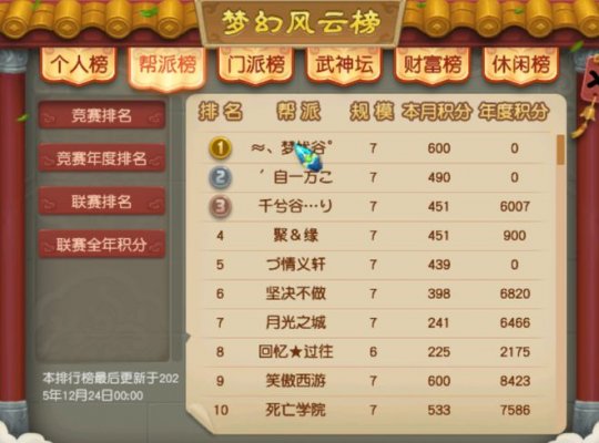 各位玩家,大家好!今天是最受欢迎的“小帅探区”时间,目的地是云南区的人气担当【彩云之南】。 提到云南区,很多玩家的第一印象就是【彩云之南】。现在的【彩云之南】是【彩云之南】和【滇越古国】于2009年1月6日合区而来,作为云南区的门面担当,【彩云之南】人气长虹,区内经济形势大好,处处都透着欣欣向荣的景象。 话不多说,让咱们开启今天的探区之旅吧! 【商业调研】 【点卡(寄售价)】 【藏宝图(出售价)】 【各类宝石(收购价)】 【低级魔兽要诀(出售价)】 【高级魔兽要诀(出售价)】 【宝宝养成道具(出售价)】 【附魔宝珠(出售价)】 【各等级环装(出售价)】 【师门烹饪(出售价)】 【师门三级药(出售价)】 【师门家具(出售价)】 【新旧符石(出售价)】 【炼妖宝宝(出售价)】 【日常调研】 【彩云之南】的玩家主要集中在神威组、天科组和天元组三大组别,尤其是天元组的玩家群体非常庞大。 组队方面,精锐组和勇武组在马副将处组队,组队难度较高。神威组在朱紫飞飞组队,组队难度一般。天科组、天启组和天元组均在西凉飞飞组队,天科组组队难度一般,天启组组队难度较高,天元组组队难度较低。 【帮派调研】 目前,【彩云之南】现存帮派192个,其中约68%的帮派已发展至7级帮规模。 【彩云之南】的帮派基本都会在帮派公告中说明具体职能(如技能帮、迷宫帮等)以及入帮要求,各位入驻的玩家可根据自身需求,参考帮派公告进行选择。 帮派联赛方面,现阶段【彩云之南】的主力帮派为“≈、梦忧谷°”,在今年的32联和34联帮派联赛中均顺利晋级32强,综合积分位列全服126名,未来可期。 【总结】 【彩云之南】作为云南区的人气门面,玩家基数大、区内经济繁荣且竞争压力小,非常适合各位佛系的玩家入驻。 好啦,今天的“小帅探区”就到这里,咱们评论区不见不散哦~ 编辑:百晓生