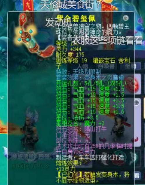 另一件150级无级别项链,灵力高达344,熔炼了13点灵力,镶嵌19段舍利子,两件装备都堪称顶级。