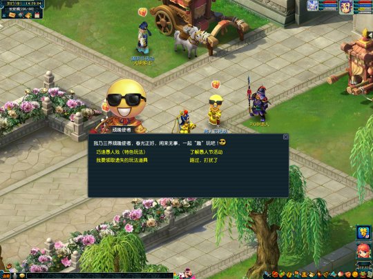 表情大作战,逗趣满三界。梦幻西游电脑版2026愚人节活动将于2026年3月24日12:00至3月25日12:00在部分服务器测试。并将于2026年3月31日12:00至4月3日12:00全服上线! 巧逢愚人戏 活动时间 2026年3月31日12:00至2026年4月3日12:00 参与条件 角色等级 ≥ 50 级,单人 玩法介绍 表情大作战,逗趣满三界!三界顽趣使者带着趣味十足的"表情玩具"现身长安城,邀请少侠一起"趣"玩! 活动期间,玩家可在长安城(240,110)顽趣使者处选择"巧逢愚人戏(特色玩法)"接取任务。少侠将协助调皮的大宝实施一项"捣蛋计划"! 完成任务后,少侠将获得特殊道具"表情玩具"。右键使用"表情玩具",可选择穿戴四款趣味表情头套——害羞表情、得意表情、墨镜表情或惊讶表情,穿戴后角色的头部将变为对应的可爱大表情,持续2小时,可随时取消。道具使用后不消失,活动期间每天都能使用。 穿戴表情头套期间,参与同期节日活动的环任务或小副本战斗,有概率触发战斗彩蛋,欢迎少侠探索,为战斗增添欢乐气氛! 特别说明 1、"表情玩具"道具有效期至2026年4月3日12:00,届时道具将自动消失。活动期间每天均可使用,尽情享受趣味表情带来的欢乐吧! 2、如果少侠不慎丢失了"表情玩具",可在顽趣使者处选择"我来领取遗失的玩法道具"重新获取。 3、顽趣使者回收时间:2026年4月7日8:00。 编辑:百晓生