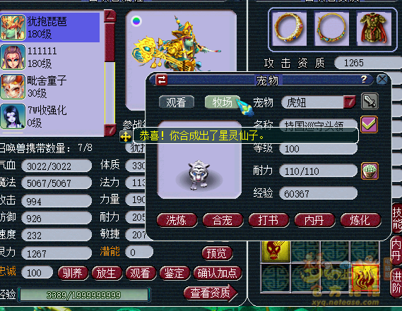 直播几组个性炼妖,前两天打废的一只宝宝镇楼,看着心烦找个持国回了,然后不信邪,炼得一发不可收拾了,光狐狸顶掉弱点雷都花了500W。。。