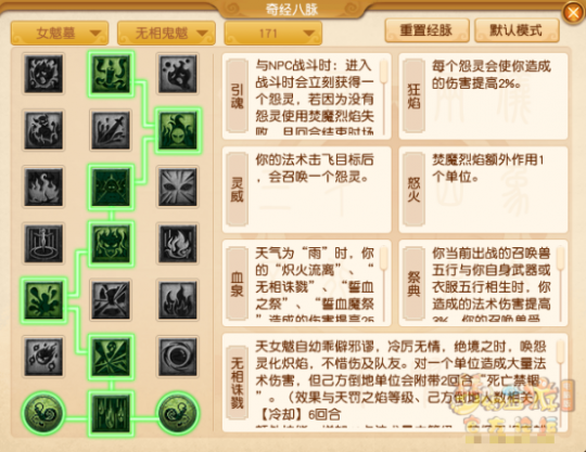 10月门派调整已正式放出,女魃墓各流派都有不少改动。不少玩家好奇经脉调整后该如何抉择,在此抛砖引玉,给大家简单分析一下部分经脉收益及推荐点法。(注:本文为基于目前测试版本做出的个人推荐,如全服版本出现微调,请留意论坛攻略版块的后续更新。) 一、女魃墓调整情况一览表 二、【无相鬼魃】流派经脉推荐 1、任务经脉推荐 推荐点法:2-3-2-2-1-2 第1层经脉推荐:【引魂】,与NPC战斗时:进入战斗时会立刻获得一个怨灵。任务的核心经脉,使女魃墓在开场阶段就能释放焚魔烈焰,极大地提升了女魃墓在任务中的灵活性。 第3层经脉推荐:【灵威】,你的法术击飞目标后会召唤一个怨灵。女魃墓的焚魔烈焰作用单位少但伤害高,极易击飞目标单位。【灵威】经脉使得女魃墓击飞怪物后就可以获得怨灵,提升了续航能力。 第6层经脉推荐:【祭典】,出战召唤兽与自身武器、衣服五行相生时,提升法术伤害,降低召唤兽防御。在PK中,【祭典】可能会导致召唤兽抗性大幅降低而被弃用,但是在任务环境中,无须过多考虑抗性问题,选择【祭典】能最大化自身伤害。 2、PK经脉推荐 推荐点法:1-2-2-1-2-3 第1层经脉推荐:【咒怨】,提升誓血之祭的伤害。虽然【咒怨】的增伤上限不如【蚀灵】高,但【咒怨】的效果更加稳定,且对高法防单位时有不俗的效果。 第4层经脉推荐:【遗世】,怨灵或幻魔攻击时可以给攻击目标叠加诅咒,带有诅咒的单位被击飞时获得“遗世”状态,下次焚魔烈焰无需牺牲单位。【遗世】经脉不仅可以给对手叠加诅咒效果,击飞带有诅咒的单位时还能让下一次焚魔烈焰无需消耗怨灵。 第6层经脉推荐:【焕然】,怨灵提高18%气血。【焕然】+【凋零】的经脉组合,可以大幅提升怨灵的生存能力,避免女魃墓陷入频繁召唤怨灵而无法输出的困境。 三、【唤魂山鬼】流派经脉推荐 【唤魂山鬼】流派以幻魔伤害为主,具有高续航性,但是短时间爆发伤害较低,不适合任务玩法,只推荐在PK中使用。 PK经脉推荐 推荐点法:3-3-3-2-2-1 第2层经脉推荐:【贪魔】,幻魔对玩家单位造成的所有伤害提高14%。【唤魂山鬼】的核心经脉,【唤魂山鬼】流派以幻魔伤害为主,【贪魔】经脉能够大幅提升幻魔的伤害。 第3层经脉推荐:【异兆】,使用唤灵·魂火有50%几率额外召唤1个怨灵。由于【唤魂山鬼】流派下,人物使用法术技能造成伤害的机会较低,因此较难有机会触发【灵威】经脉的效果,所以推荐选择【异兆】经脉。 第6层经脉推荐:【幻视】,幻魔攻击带有诅咒的单位时获得吸血能力。在选择【幻视】经脉后,幻魔每次攻击都有概率恢复血量,虽然吸血效果并不显著,但也足以提高幻魔的续航能力。 四、【幽影怨灵】流派经脉推荐 【幽影怨灵】流派以堕灵伤害和诅咒为主,目前出现频率极低,任务环境下难以有发挥,只推荐在PK中使用。 PK经脉推荐 推荐点法:1-2-3-2-2-3 第2层经脉推荐:【灵诅】,“谜毒之缚、诡蝠之刑、怨怖之泣”作用人数增加1。【幽影怨灵】流派的核心经脉,大幅提升诅咒技能的覆盖面积。 第5层经脉推荐:【魔隐】,怨灵、堕灵受到的伤害降低12%。与玩家战斗时,召唤的首回合受到的伤害额外降低30%。【魔隐】经脉的收益相较于【血匿】经脉更为稳定,虽然最大减伤幅度较低,但无需任何条件即可触发。 五、全文总结 本次门派调整,女魃墓的【无相鬼魃】和【幽影怨灵】都没有变化,可以继续沿用过去的经脉选择。然而在经脉调整之外,召唤兽最大召唤数量的提升对女魃墓更为关键,这使得女魃墓有机会召唤更多幻魔,极大地增强了女魃墓的续航能力。 相信在此次门派调整之后,玩家肯定有自己的思考和选择,也期待大家发表更多不同的经脉选择。 特别说明:本文仅代表个人观点,不代表游戏或官方论坛立场。 编辑:百晓生