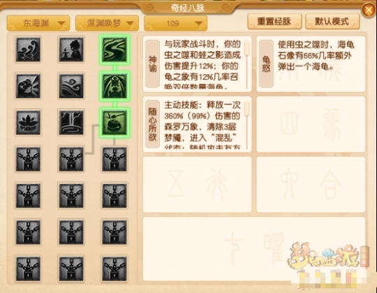 10月门派调整已正式放出,东海渊门派也有不少改动。不少玩家好奇经脉调整后该如何抉择,在此抛砖引玉,给大家简单分析一下部分经脉收益及推荐点法。(注:本文为基于目前测试版本做出的个人推荐,如全服版本出现微调,请留意论坛攻略版块的后续更新。) 一、东海渊调整情况一览表 二、东海渊任务经脉推荐 推荐点法:1-1-2 第1层经脉推荐:【荒潮】,与NPC战斗时,森罗万象造成伤害提升75%。任务核心经脉,可以大幅提升森罗万象的伤害,让森罗万象的伤害高于虫之噬,使东海渊在挂机时无需担忧梦魇层数。 第2层经脉推荐:【余响】,琴音三叠会使你下个“虫之噬”或“蛙之影”造成的伤害提高18%。因为天罡地煞、雁塔地宫等难度玩法中,【随心所欲】无法再造成高额伤害,东海渊的愤怒使用特技琴音三叠能有更高收益,这就使得【余响】经脉成为任务的首选。 第3层经脉推荐:【深渊】。在第二层经脉选择【余响】的前提下,第三层经脉只能选择【恍然一梦】或【深渊】,相较于【恍然一梦】,【深渊】可以显著提高玩家伤害,在长回合战斗,如天罡地煞中拥有更高收益。 三、东海渊PK经脉推荐 推荐点法:3-3-3 第1层经脉推荐:【神谕】,与玩家战斗时,虫之噬和蛙之影造成伤害提升12%。东海渊PK的必选经脉,对于核心技能虫之噬、蛙之影、龟之象都有大量增幅,能显著提升东海渊的技能伤害。 第2层经脉推荐:【龟怒】,使用虫之噬时,海龟石像有66%几率额外弹出一个海龟。因为技能“龟之象”在本次门派调整中有显著加强,与其相关的经脉【龟怒】也成为推荐的首选。 第3层经脉推荐:【随心所欲】,释放一次360%伤害的森罗万象,在造成巨额伤害的同时还能降低自身的梦魇层数。对于东海渊而言,【随心所欲】只需要消耗愤怒和定神香就可以造成一次爆炸伤害,可以让PK节奏大幅加速。 四、全文总结 本次门派调整强化了东海渊的战斗表现,龟之象有概率使玩家复活。这使得东海渊在难度任务和PK中的表现都显著提升,也使得经脉选择和战术打法发生了一定的变化。 相信在此次门派调整之后,玩家肯定有自己的思考和选择,也期待大家发表更多不同的经脉选择。 特别说明:本文仅代表个人观点,不代表游戏或官方论坛立场。 编辑:百晓生