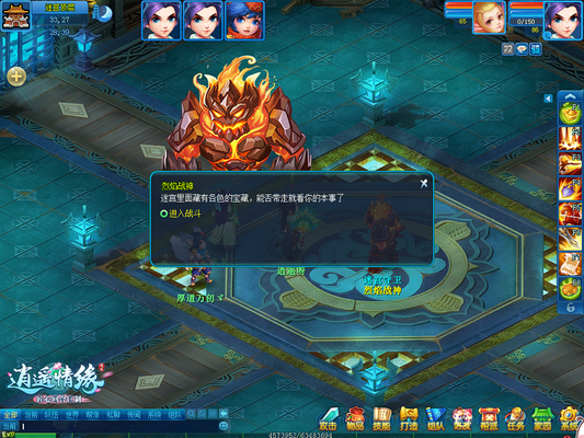 在跟小伙伴们组队一起进入逍遥迷宫之后,你将会发现这个迷宫被分为九层。在前八层都各有四个传送点,有可能传送到上一层也有可能传送到下一层,最后只有当队伍成功通过前八层的迷宫以后,才能挑战位于迷宫顶层的BOSS!