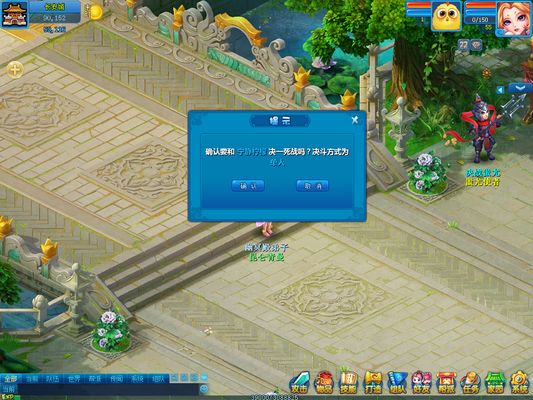 在接受了别人的决斗邀请以后,你需在10分钟内到左千牛卫那里去应战,不然就是临阵脱逃,算你认输。在这场决定名誉的战斗中,逃跑这种懦夫行径是不允许的,其他方面都和普通的PK一致,想办法去击倒对方取得胜利就是你唯一要考虑的事。