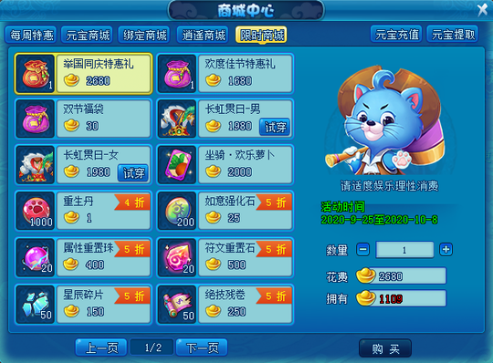 全新的坐骑在节庆期间可以在商城买到,价格是2000元宝!感兴趣的话不妨考虑一下,给自己过一个魔性又沙雕,欢乐多多的国庆中秋节吧!要是和小伙伴组队,都骑着这样的大萝卜招摇过市的话,回头率一定100%吧? 【兔子头饰 可爱值爆表】 这个节日不仅有大兔子,还有小兔子!看到商城里卖的福袋了吗?里面就有可能开到节日专属的头饰“庆典玉兔”,戴在头上感觉整个人都萌起来了...而且福袋只要30元宝一个,童叟无欺,不妨来试试能不能将这样可爱的头饰带回家?