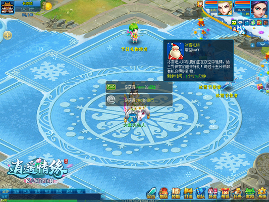 我相信每位少侠心中有三界、习武修炼都是为了守护苍生与大义,而在冰雪节这场盛大的节日里,三界各地都有需要帮助的人,少侠快前去帮助他们解决困难,送给他们冬日里的温暖吧!活动期间可组队(队伍人数不低于3人)到节日使者处领取送温暖的任务,,每天可接2次,每次十环,完成第10环可得到来自冰雪节使者丰厚的洗点丹、玫瑰花等回礼以及冰雪节积分。 【冰雪礼物 给你冬日惊喜】