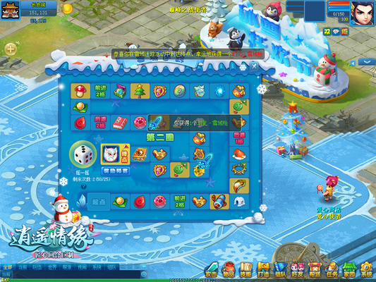 皑皑白雪,千里冰封,雪域中充满了冒险与挑战,少侠,敢不敢来与我掷骰子?赢了,礼物你拿走,输了礼物还是你的。冰雪节期间完成各项冰雪节项目可获得冰雪节积分,消耗积分可进行雪域迷踪活动,没消耗25积分可投掷一次骰子,完成一圈行程后,终点奖励将会替换,一共有冰雪节限时武器幻化、冰雪节限时头像框、契魂券·史诗和兽魂丹*2这四种不同的终点奖励等你来拿。 这个凛冽寒冬,少侠也要热情四射、活力满满哟,因为《逍遥情缘》六大冰雪节活动伴你欢度这个冬天呀。酷暑寒冬,我们都相约逍遥世界哟~