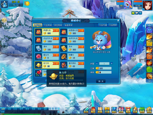 做任务换体力还是比较费时间的,其实你还可以从家园里获取体力值,那就是养蜜蜂吃蜂蜜!在家园的积分商店里购买大、中、小三种蜂箱,然后将这些蜂箱交给饲养师,让他帮你在家园里养蜜蜂。只要等上若干小时就可以收获高品质的蜂蜜,吃上一个也能恢复大量体力。 【体力丹药 大补体力】 当然,还有更快的恢复体力的方式,那就是在商城中购买一种叫“体力丹”的道具,吃上一个就能瞬间恢复300点体力值。这么多体力值,如果纯靠做日常来恢复,可是要做好久的!体力丹在商城的售价是25元宝,有需要的话可以前往采购。