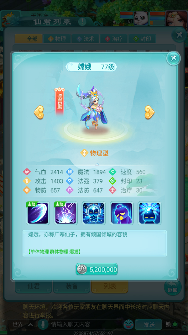 后羿的妻子嫦娥是中国神话中最为出名的仙女之一,久居广寒宫的她,给人一种柔弱女子的印象。但实际上...至少在《逍遥情缘》手游里,她绝对是非常可靠的输出型仙君,而且还是打物理伤害的!如果将她加入队伍,你就再也不用担心自己的团队火力不足啦。 【看似柔弱 实则暴力】 在分类上,嫦娥被归为凌霄殿的物理仙君,真的想不到这样的弱女子居然会有爆炸般的物理伤害。然而属性却不会骗人,嫦娥有着优秀的攻击力,不过她高输出的秘诀其实藏在她的几个技能里面。 【单攻群攻 皆有手段】 月相是嫦娥的主力技能,有75%概率造成2倍伤害,有25%概率造成0.5倍伤害,是一个很赌的技能,伤害的方差非常大。另一个技能广寒天威是嫦娥的主要群攻手段,最多可以同时攻击4个敌方目标。 【被动技能 优化月相】 如果你觉得月相这个技能不稳,太赌了的话,可以用50级解锁的月光恩泽技能来调整。这个被动的效果是将月相造成2倍伤害的概率提高10%,也就是达到85%,相应的造成0.5倍伤害的概率就只有15%啦。 嫦娥还有一个被动技能月之力可以进一步提高月相的力度,让原本的2倍伤害提高到2.5倍,简直是更加粗暴了。在这些被动技能的辅助之下,嫦娥自然就变成了一个超高物理输出的“弱女子”仙君啦。 更多宠物心得,请锁定叶子猪《逍遥情缘手游》官方合作专区。 编辑:叶子猪小秘书