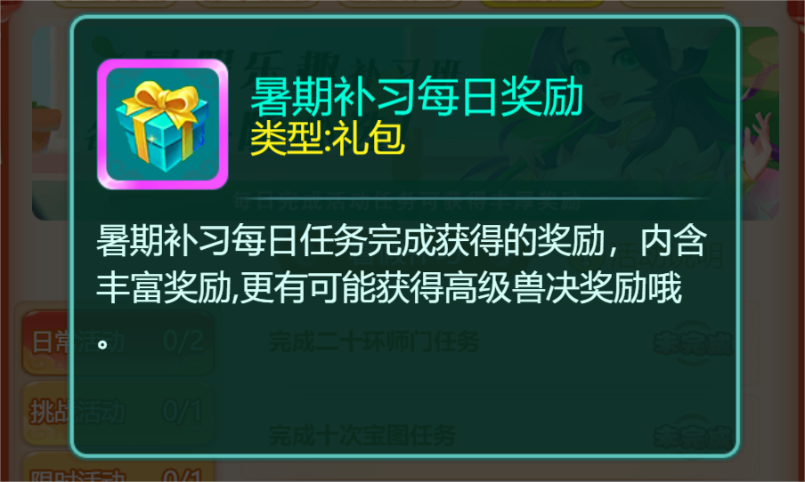 少侠们好!经过瑶瑶漫长的挖料工作终于到手了夏日活动的内容。 此次的夏日活动还是很丰富的不仅有大家喜欢的各类挑战也有新活动加入哦~话不多说,一起来看看本次都有什么精彩内容吧~ 2023.8.18-9.3 盛夏乱斗 季夏天气仍然炎热,少侠内心激情难消,正好可以来逍遥来一场燃情大乱斗,顺带消消暑。 2023.8.18-8.31活动期间内,等级≥30级的少侠可于每日17-21点,前往长安城主街-“乱斗使者”处接取任务。 满足条件的少侠,只需匹配到其余2名玩家即可开启一局游戏;每局游戏分为5轮,少侠需要记住对应卡牌的位置,规定时间内翻对卡牌即可获得积分。 对局结束时,5轮积分数最高的玩家获胜(胜者不唯一),并可获得对局奖励(对局奖励每天可领5次);若没有任何玩家获得积分,则判定所有玩家均失败。 三战奖励 首胜奖励 除了对局奖励之外,我们还特设了“首胜奖励”和“三战奖励”,就等少侠来领取啦~ 除草挑战 夏季到来,草木茂盛通灵,草团诞生智慧,出现王者,分派草团大军入侵逍遥世界。 2023.8.21-9.3活动期间内,等级≥30级的少侠需3人及以上组队,前往逍遥各处挑战草团大军。 草团大军有一、二星之分,二星难度较高,周一至周五内击败3次草团大军的队伍,不仅可获得丰厚奖励(只能挑战当天的怪物),还可在周末与最终BOSS-草团大王来一场激烈的决斗。 当然啦!若能成功击败草团大王,少侠能获得的奖励也会更加丰厚哦!不过需要注意的是:跨天时若仍在战斗中,则会强制退出战斗且判定失败。 夏日作战 四季轮换,又是一年夏季到来,逍遥各类动植物再现通灵,且出没在逍遥世界各处地点。 2023.8.18-8.31活动期间内,通灵怪物每天将依次出现在花果山、望仙镇、桃花坞、长安城、望仙镇、桃花坞、长安城中。 等级≥30级的少侠可携带仙君,前往各处挑战通灵怪物(只能挑战当天的怪物);不同的怪物会携带不同的技能特性,少侠们可要合理调整自己的仙君阵容和挑战策略呀~ 当然奖励是不能少的啦~通关当天的5只通灵怪物后,可以到对应页面领取丰厚奖励啦,幸运鹅还能有机会开出高兽决哦~ 暑假补习 暑期假日即将结束,各位的“功课”可有按时按量按质完成呢?为此特设补习任务,让少侠在完成各类任务的同时,还可领取到不错的奖励! 2023.8.18-8.31活动期间内,少侠每日可选择完成2次日常活动、1次挑战活动、1次限时活动的任务后,便可获得“暑期补习每日奖励”的礼包啦~ 当然啦~除了每日礼包之外呢,我们还额外设定了阶段性的礼包;每周完成第3日、第5日、第7日的任务后,同样能领取到一份礼包哟~ *以上仅为爆料版本,请以正式上线内容为准* 请留意周五维护更新公告,更多资讯,请锁定叶子猪《逍遥情缘手游》官方合作专区。 编辑:叶子猪小秘书