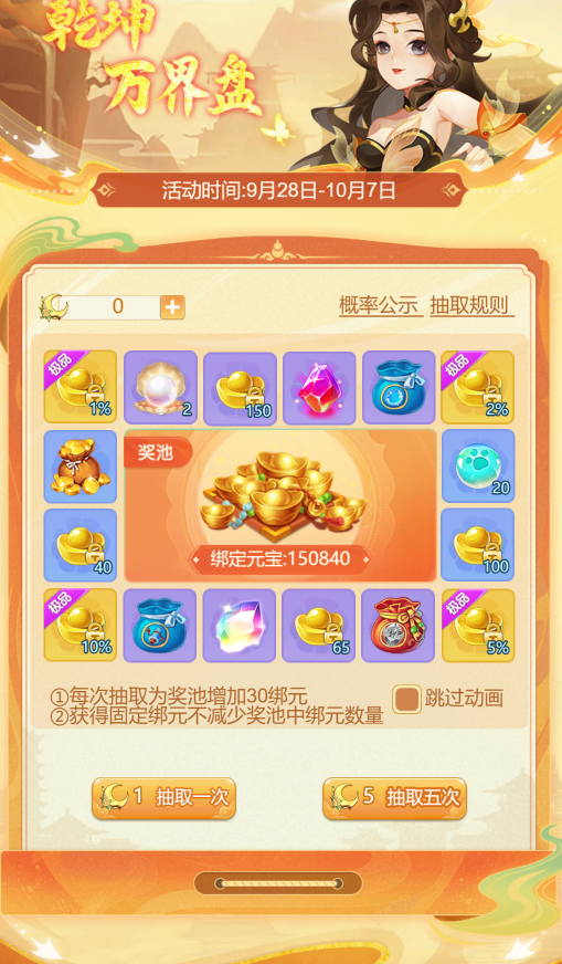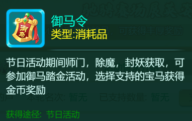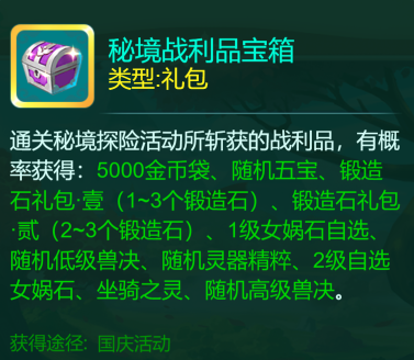 各位少侠们好呀,眼瞅着马上就要国庆假了,大家的心情有木有激动起来呀? 刚过完中秋马上又有新活动整上啦~跟瑶瑶一起来好好瞅瞅吧! 魔物攻城 活动时间 9月28日-10月7日每天8点-23点整点刷新。 参与条件 人物等级≥45级,3人及以上组队参与。 活动介绍 丰收佳节、普天同庆之时,有魔物欲趁人族松懈的机会大举攻城! 满足条件的少侠,可3人及以上组队前往长安城、望仙镇、桃花坞等地,团结一致抵御魔物攻城! 此次攻城的魔物分为三类:数量庞大但实力低微的饿鬼、中坚精锐梦魇、实力强大的天魔; 少侠可根据自身实力选择相应魔物进行挑战,但击败的魔物越强获得的奖励就会越好,每日可获得1次奖励哦~ 御马踏金 活动时间 9月28日-10月7日每天19点至22点。 参与条件 单人参与。 活动介绍 节日活动期间,玩家可通过每日师门、除魔、封妖获得节日限定物品“御马令”; 活动期间内将会开启赛马活动,从19点开始每20分钟开启一场赛马比赛,20分钟的前15分钟为准备时间,可进行投票,后5分钟为比赛时间,不可投票。可以在活动时间的准备阶段支持自己心仪的宝马 每轮赛马结果出现后,系统将根据少侠支持的马匹名次,以及消耗的御马令数量给予对应的金币奖励,并发放至各位少侠的邮件内。 普天同庆 活动时间 9月28日-10月7日每天19点至22点。 参与条件 单人参与。 活动介绍 活动期间,每隔20分钟长安城内将会燃放烟花,玩家可在长安城中观赏。可在长安城、桃花坞、望仙镇中拾取并燃放散落在地上的庆典烟花,燃放后会随机获得银币、金币奖励,烟花每天最多拾取10次 秘境探险 活动时间 9月28日-10月7日。 参与条件 单人参与。 活动介绍 节日活动期间,玩家可通过秘境镇守开启秘境探险; 活动期间,可以配置自己要出战的仙君阵容和宠物阵容阵法,最多携带4个仙君和4个宠物,开始探险后无法更改携带的阵容,只能通过重置重新开始;选择完成后点击节点选择前进路线; 通关秘境探险活动后将获得“秘境战利品宝箱”,奖励多多! 乾坤万界盘 活动时间 9月28日-10月7日。 参与条件 单人参与。 活动介绍 每次抽取会为奖池增加绑定元宝,抽取需要消耗道具“乾坤月”,每次均有机会获得随机的极品大奖、稀有奖励、随机的普通奖励(具体奖励可点击按钮“概率公式”进行查看),极品大奖可重复获得哦! 外观上新 背饰·小龙 队标·彩云 聊天气泡·瑞彩祥云 头像框·七彩祥云 以上就是国庆活动的相关介绍啦 再等几天就可以玩啦! 快喊上队友一起来!! *以上仅为爆料版本,请以正式上线内容为准* 更多活动资讯,请锁定叶子猪《逍遥情缘手游》官方合作专区。 编辑:叶子猪小秘书