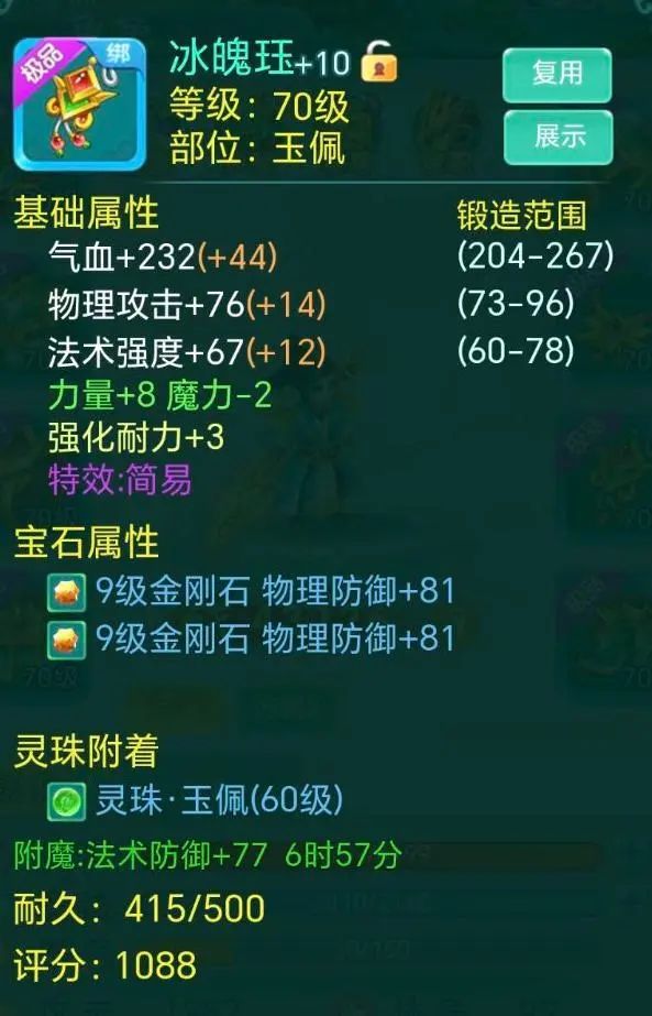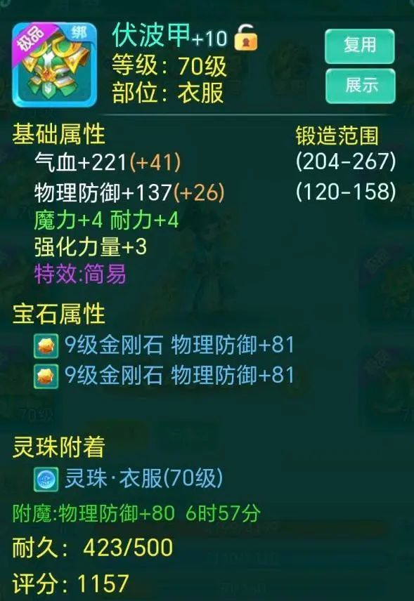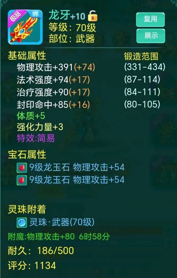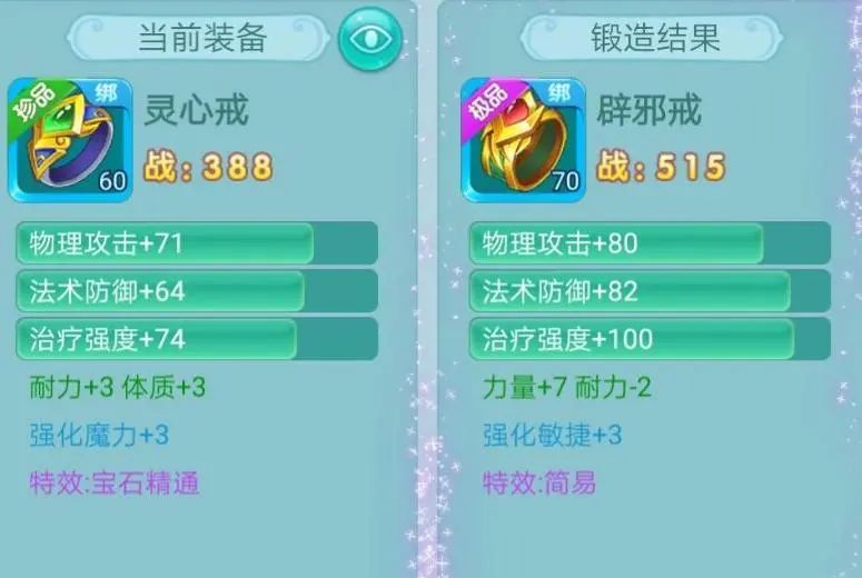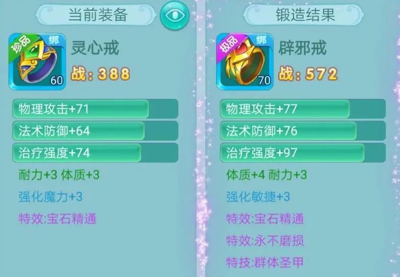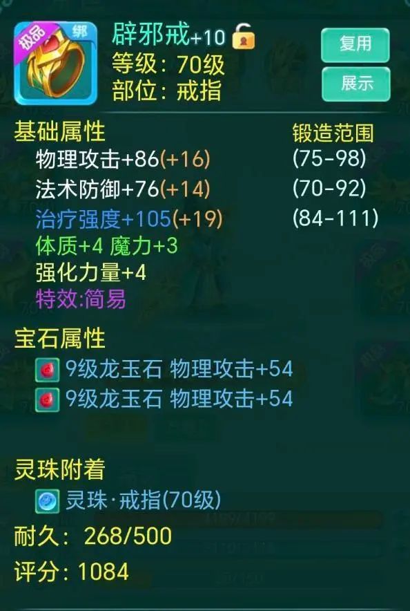 亲爱的少侠们好呀~ 最近真是越来越冷啦 可得好好保暖噢! 正在搓手手的瑶瑶这就带着新鲜的装备来咯! 长安1区-暴雨 “一年总算全套简易了” 全简易装来袭! 还有一件更是三红 简易+封印抵抗+群体兽印 从宝石看来下少侠肯定是个物理系无疑 那这件三红就很合适呀 能提高物攻的群兽 还能抵抗封印 就是附加的-2力量有点不太给面子嘛 还好只有这一件装备是减力量 再看少侠的面板 攻击接近2000诶!! 战力4万3!! 好美丽的数字 为什么瑶瑶没有??? 天下无双-心 封印抵抗+烽火连城 戒指 简易 衣服 别灰心 虽然没有简易戒指 但我们有简易的衣服嘛 看着附加也还阔以啦 不过要是这世界有魔法就好了 立刻把戒指的封印抵抗换成简易 那就是完美双红啦! 长安85服-今天星期一 “可惜不是简易,瑶瑶旺我” 让我们有请三红选手 物理抗暴+法术忽防+永不磨损 能抗物暴、忽略法防 同时还不用花钱修理 白字属性也不错 简直就是为法师量身定做啊 而且随便哪个特效换成简易都不得了哈哈哈 可惜咯~ 剑忆无尘-爱麋鹿的鹭璐。 “睡醒三连,出货了” 这里也有个三红选手 宝石精通+永不磨损+群体圣甲 更大程度发挥宝石效果 同时减少受到的物伤 还永不磨损 三红罢了~少侠毫不在意 这不马上就~ 轻轻松松简易出货! 今天的内容就到这里啦,更多装备鉴赏,请继续锁定叶子猪《逍遥情缘手游》官方合作专区。 编辑:叶子猪小秘书