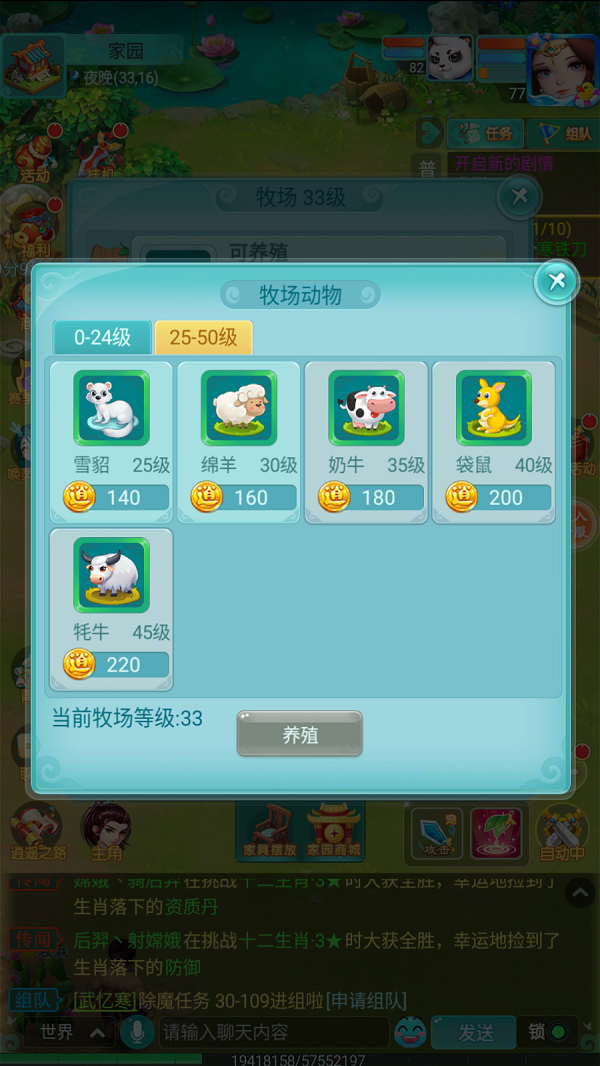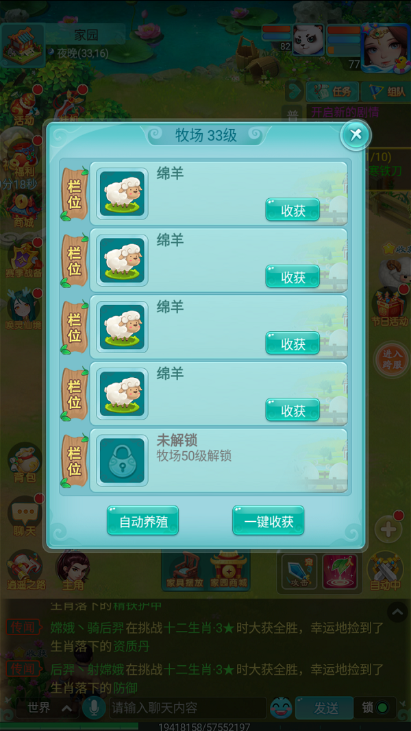 如果你拥有一片私人的牧场,你会在广阔的草场上养些什么呢?家常的鸡鸭牛羊,还是稀有的雪貂和袋鼠?只要来到《逍遥情缘》手游,这一切都不会只是想象,你在这里可以真的体验到成为牧场主的快乐!快来经营你的赛博牧场吧。 【家园牧场 养殖动物】 牧场是家园庭院中的一个设施,在这个牧场里你不用事事都亲力亲为,因为有一位养殖管理员会辅助你。可养殖的动物种类也很多,从常见的鸡鸭牛羊到稀有的袋鼠、雪貂,应有尽有。 不过并不是所有动物在一开始就能养殖的,如果你想养殖高级的动物,比如昂贵的牦牛、袋鼠等等,就必须给牧场升级,这需要花费一定的银币和时间。牧场等级越高,花费也就越多。 【一键收获 出售赚钱】 如果想图省事儿,也可以使用一键养殖功能,管理员就会自动帮你养目前等级最高的家畜了。养殖也不需要你去操心,这些都是管理员的活儿,你只要等待时间结束家畜养育成熟即可。 收获后的各类动物产品,你可以选择卖掉换成金币。打开家园的生产仓库,你就可以看到自己目前的存货了,缺钱的话就选择全部出售。经营自己的一片牧场,将牧场逐渐发展壮大吧! 编辑:月光下完美