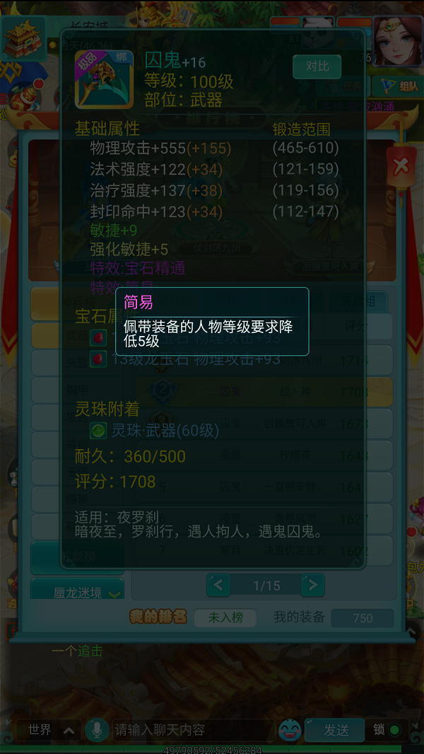 在《逍遥情缘》手游的战场上,高手过招,装备的好坏,其影响是非常巨大的。如果你能穿戴比对手高10级的装备,那么就已经赢在起跑线了。那么要怎样才能做到这一点呢?关键就在一个装备特效——简易里!它的强大你一看便知。 【简易特效 降低限制】 “简易”装备特效,可以让一件装备的穿戴等级要求下降5级。比如说70级的装备,卡69级的玩家原本是不可能穿的,但如果装备上有简易特效的话,那么就变成了65级角色也可以装备上了。 【高级装备 占尽优势】 高等级装备的优势,除了白值属性的上下限更高以外,其实还有一点就是可以镶嵌的宝石等级也更高。在更高属性和更高级宝石的加持下,穿高级装备的人就会比穿低级装备的人强出许多。 【装备锻造 随机出现】 不过简易特效并非那么容易获得的,你只能在锻造装备的时候随机刷出来,概率还是比较小的,可遇不可求。如果你是卡69或89的玩家,若能搞到一身简易装备,那绝对会在战场上大占优势。 编辑:月光下完美